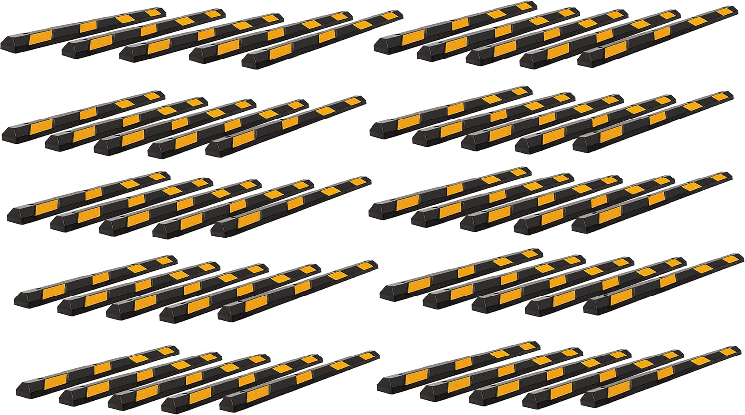 ZONETECH Large Heavy Duty Rubber Parking Curb – 72” Premium Quality Auto Garage Wheel Stopper Professional Grade w/Yellow Reflective Tape for Car, Truck, Trailer and RV (50-Pack)