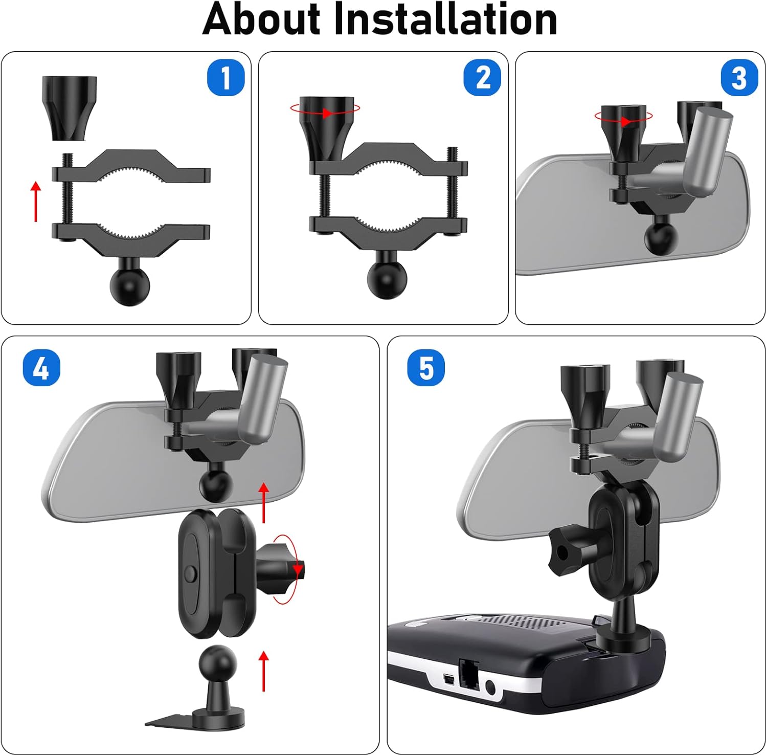 - Rearview mirror mounting base is made of ABS environment-friendly raw materials,The radar detector mount ball joint adapter is made of alloy materials,The surface is anodized to improve corrosion resistance,wear resistance and heat resistance