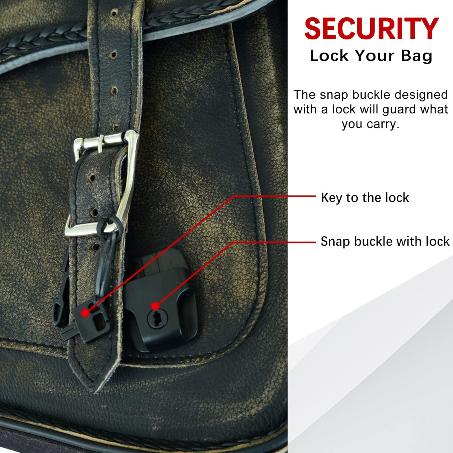 - [Easy to Access] - The saddle bags are designed with pin buckles and the quick release snap buckles. The quick-release buckles allow you to easily access the stuffs of the bags. Flap design of saddlebags and quality leather construction help keep rain or dust out and make your stuff dry and clean. The saddlebags feature gunn holsters. Elastic and adjustable strapping in each bag built for concealed carry.