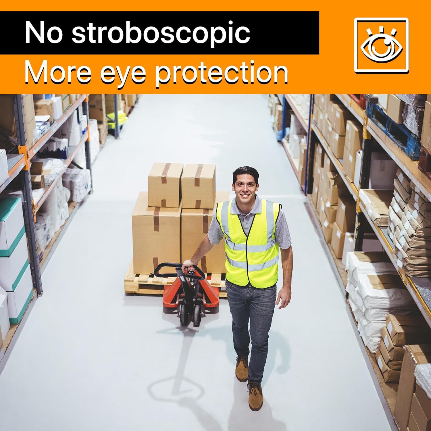 - Eye Protection: Equipped with upgraded no stroboscopic technique, this new led high bay shop light can effectively removed the flash and reduce visual fatigue to protect your eyes and give users a better experience when working or shooting.