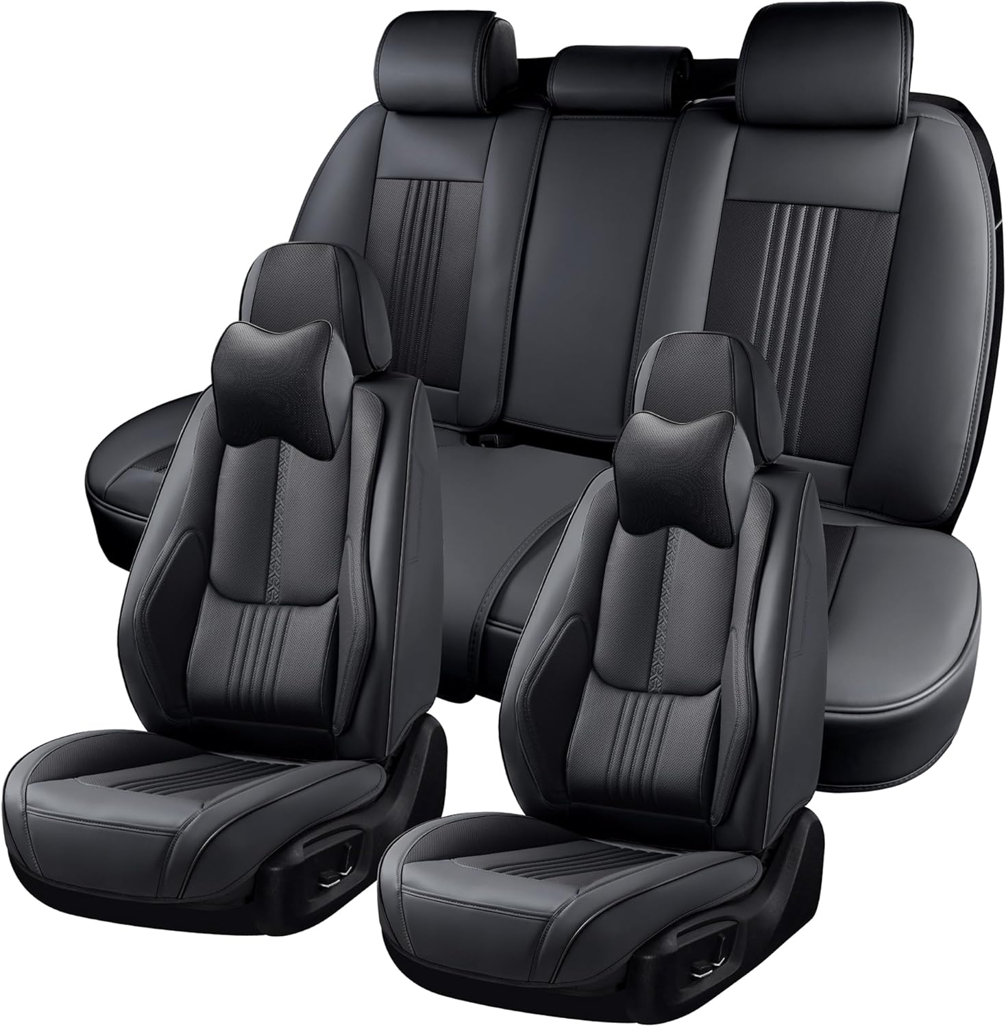 Car Seat Covers Full Set, Front and Rear Seat Covers for Cars, Waterproof Leather Auto Seat Protectors with Head Pillow, Car Seat Cushions Fit for Most Sedans SUV Pick-up Truck, Black