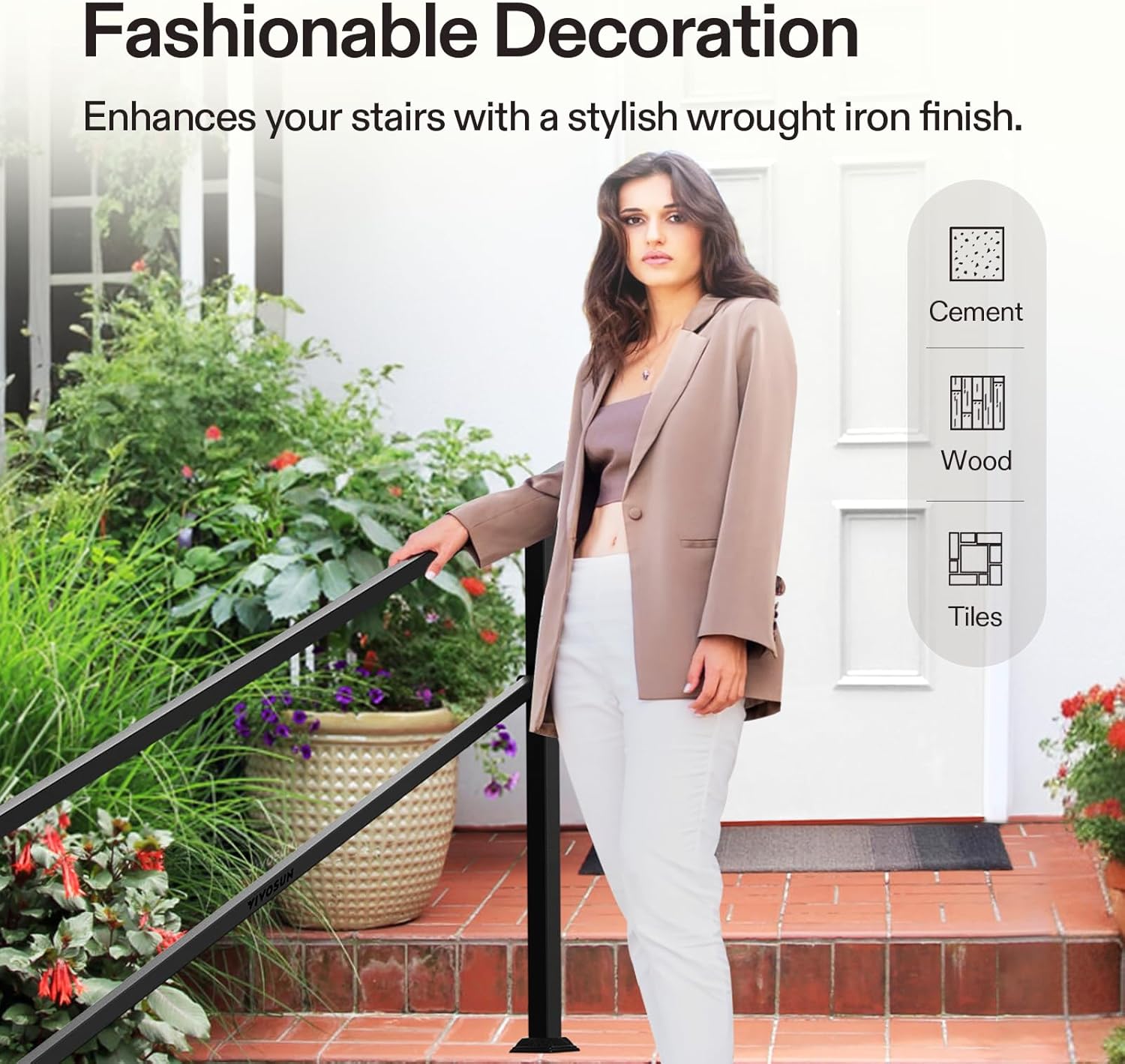 - Safe & Fashionable: This railing’s powder coated surface is easy to maintain and clean; It helps people keep balance in rainy days or in winter, and prevents slipping on wet or icy days, and also decorates your stairs with a fashionable wrought iron look