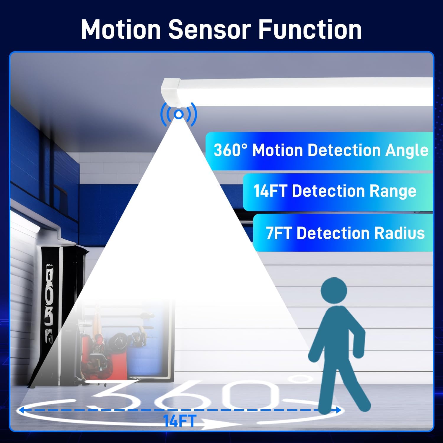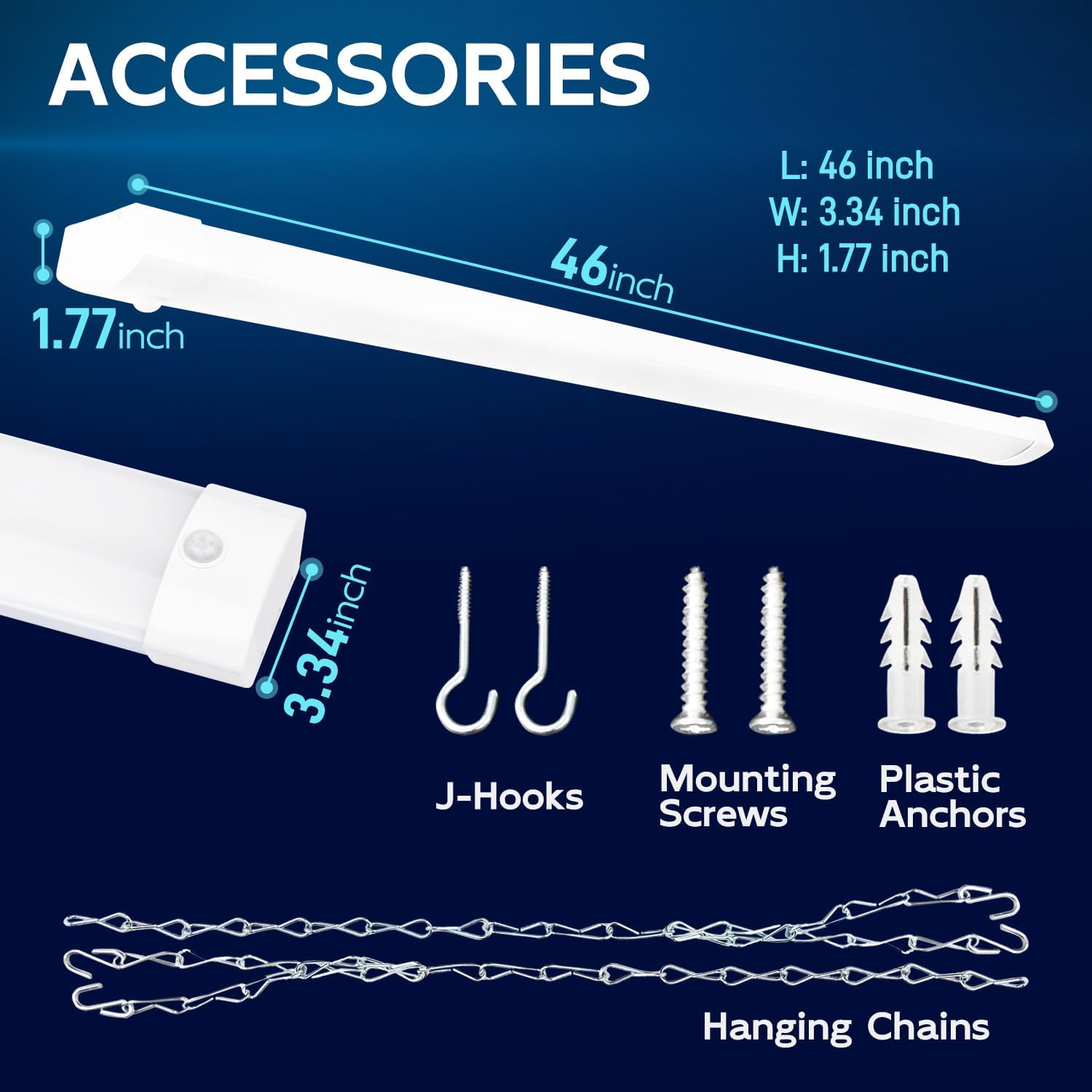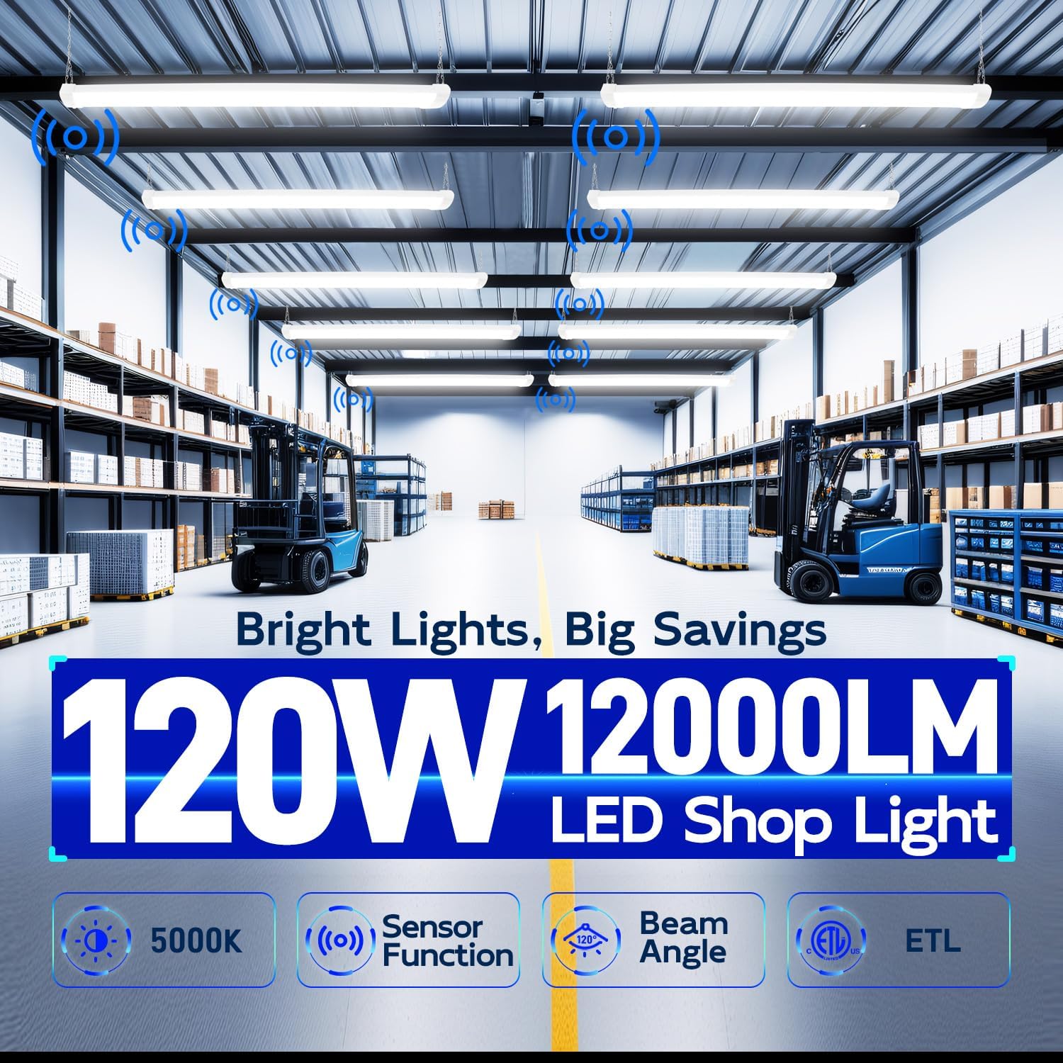 hykolity Pir Sensor 4FT 120W LED Shop Light, 12000lm(370w Equivalent), 5000K Daylight, Motion Activated, Hanging or FlushMount, with Power Cord, for Garages, Workshops, ETL, 2 Pack