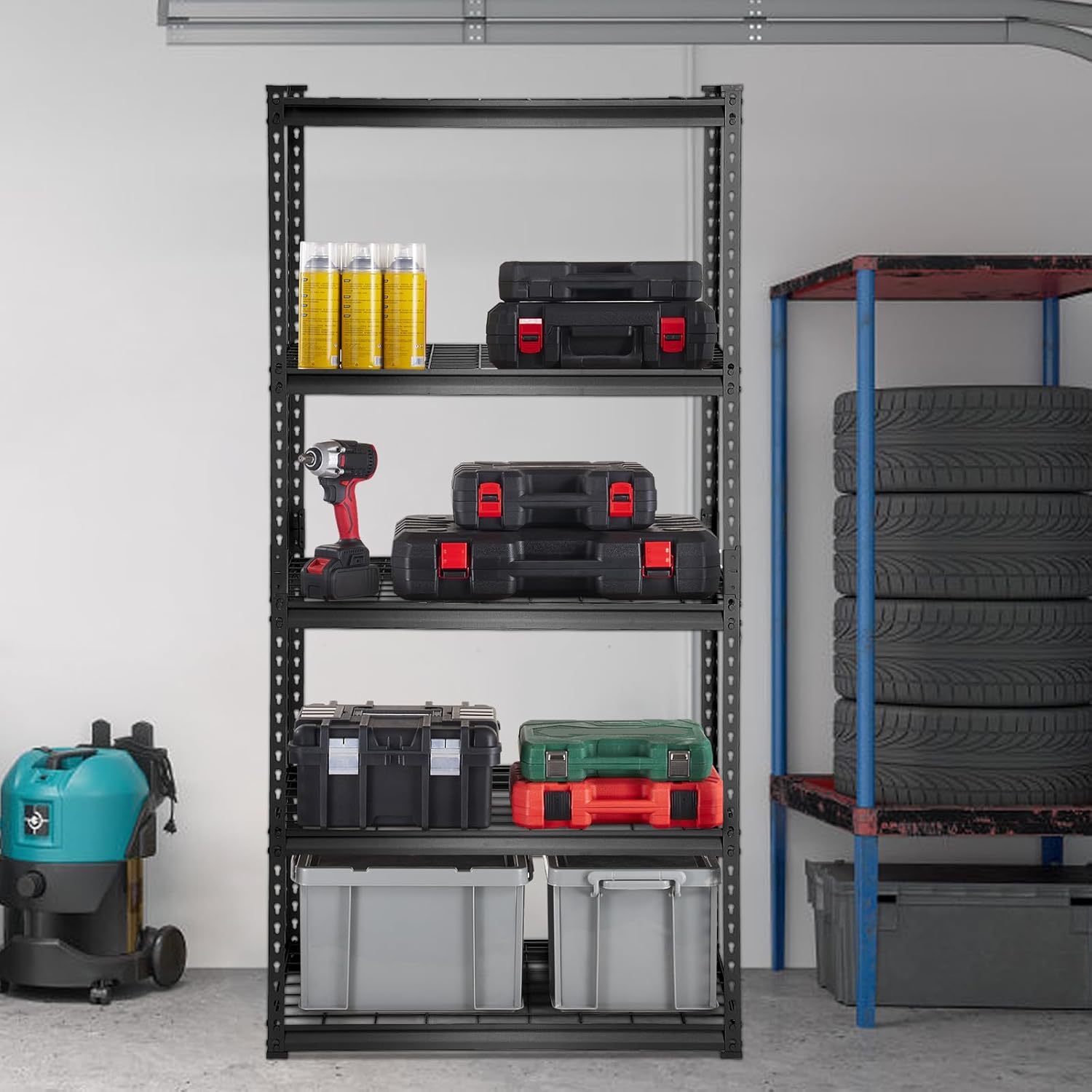 - Load Up Your Life: Transform your cluttered garage into a neat and organized space with our storage shelving unit. With a 2000 lbs total load capacity, you're free to pile on tools, supplies, or whatever you need in your garage or warehouse. Remember, each shelf is a sturdy 400 lbs carrying companion!