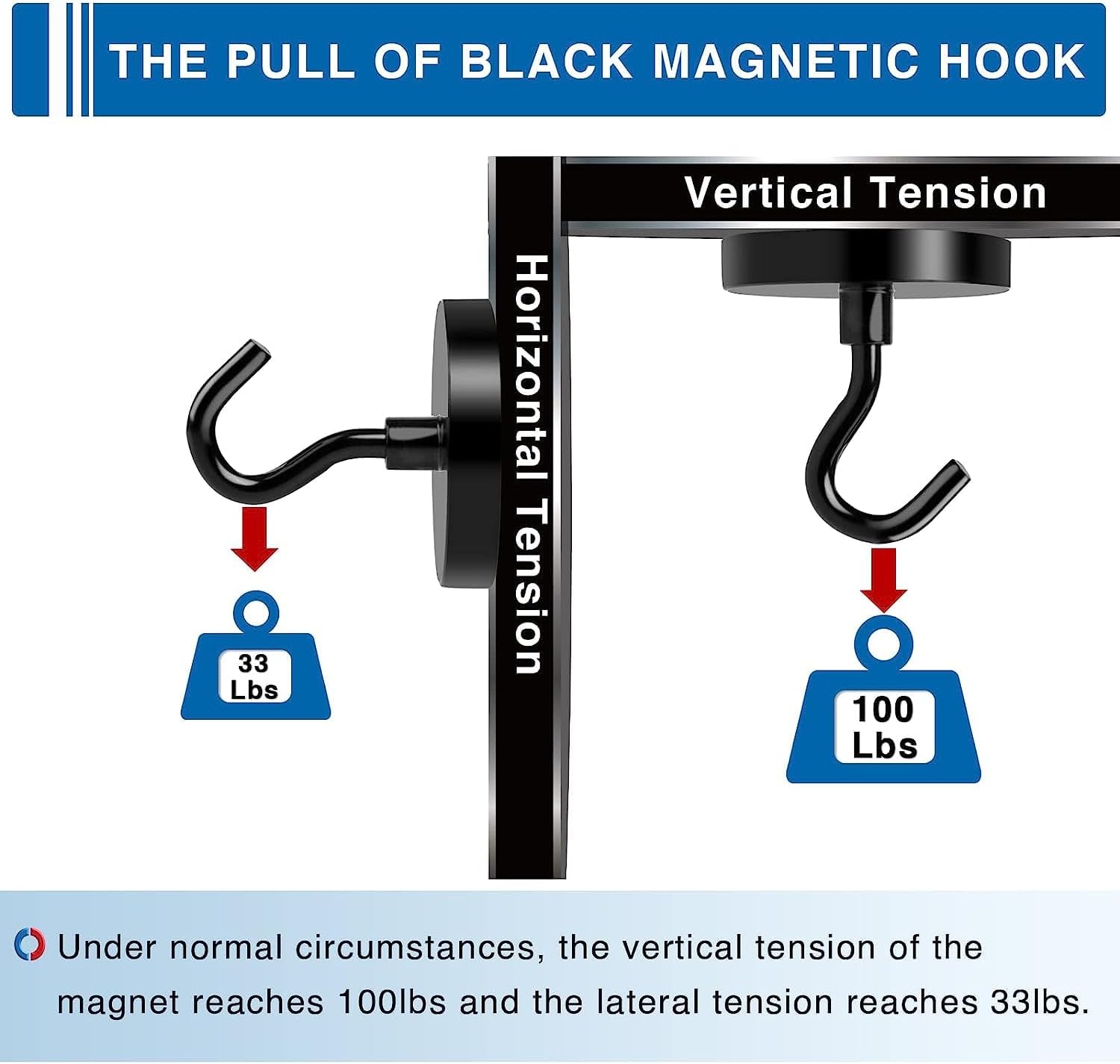 - 【HIGH QUALITY COATING】Black magnetic hooks are coated with triple layer of Black epoxy+ Nickel+ Copper, which greatly enhances magnets with hooks corrosion resistance. The layer of heavy duty hook not only provides a shiny and rust resistant surface, but also helps prevent the metal hooks for hanging from breaking or cracking.