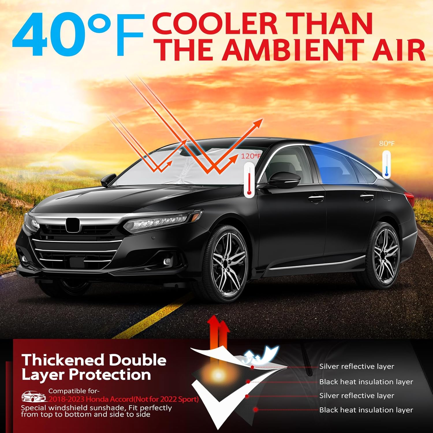 - KAYZT windshield sun shade is precise custom fit for 2018 2019 2020 2021 2022 2023 2024 2025 Honda Accord Sedan, Thoroughly covers every corner of the windshield, Tailored to accommodate rear view mirror, Ensuring a seamless and snug fit without obstruction, Must have car accessories for Santa Fe
