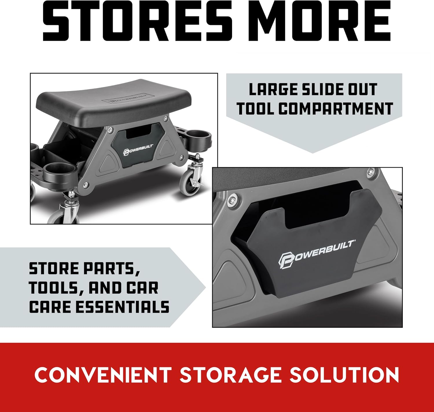 Powerbuilt Heavy-Duty Utility Rolling Seat Upgraded with Padding, Sturdy Locked in Trays, Premium Wheels for Garage Work - Grey 642924ECE