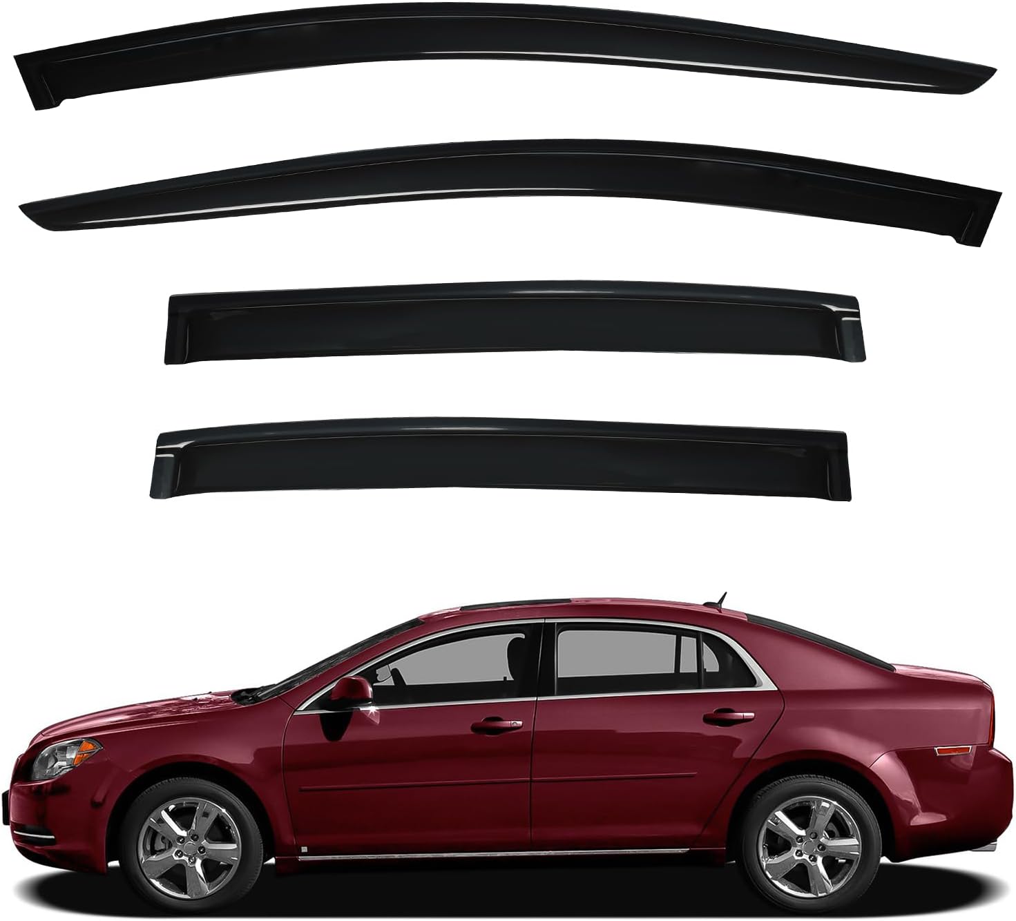 Window Visors Sun/Rain Guard Compatible with 2008 2009 2010 2011 2012 Chevy Malibu 08-12 Malibu Front+Rear Smoke Tint Outside Mount Tape-On Vent Window Wind Deflectors