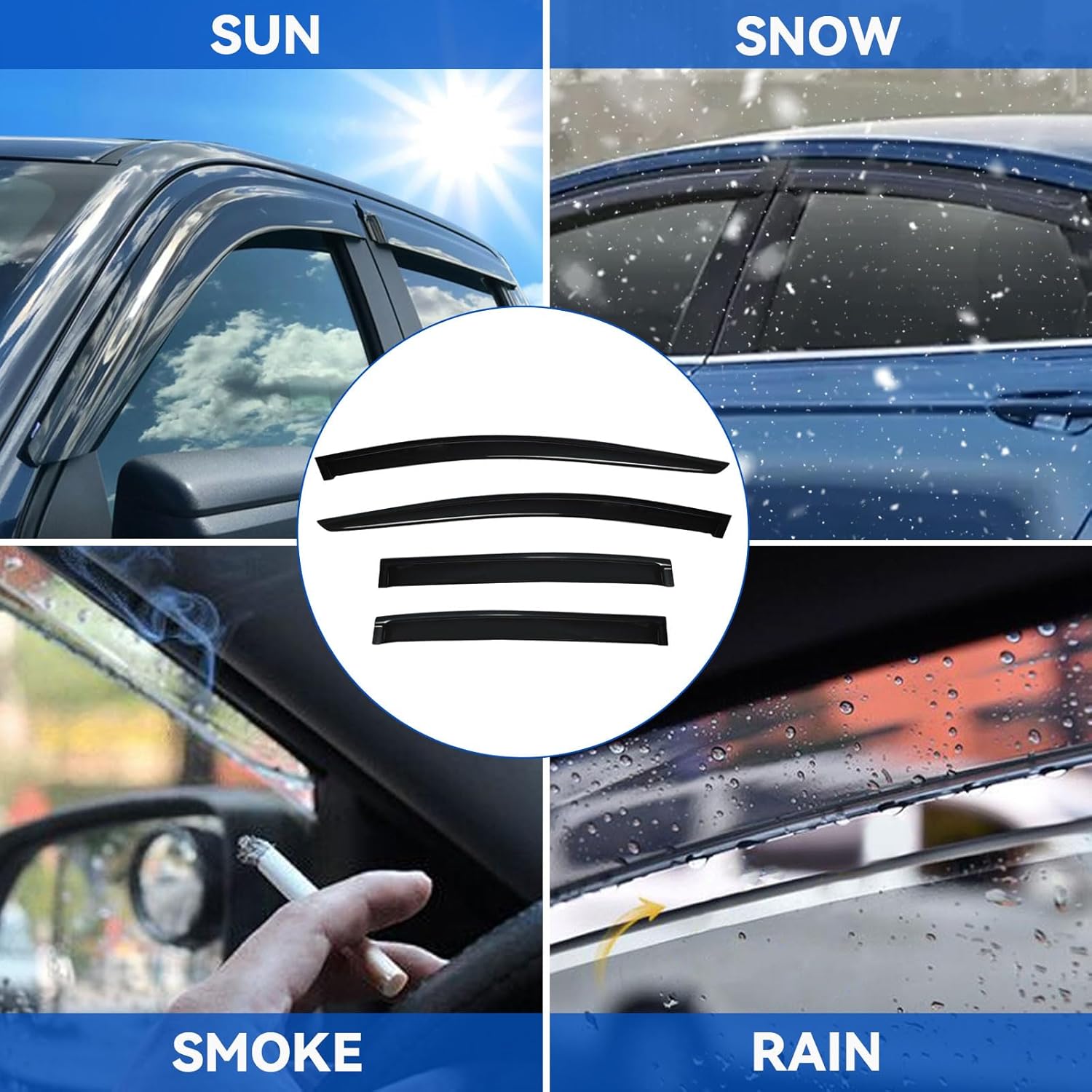 - Package Included: 4pcs front + rear vent window visors (3M Tape Included)