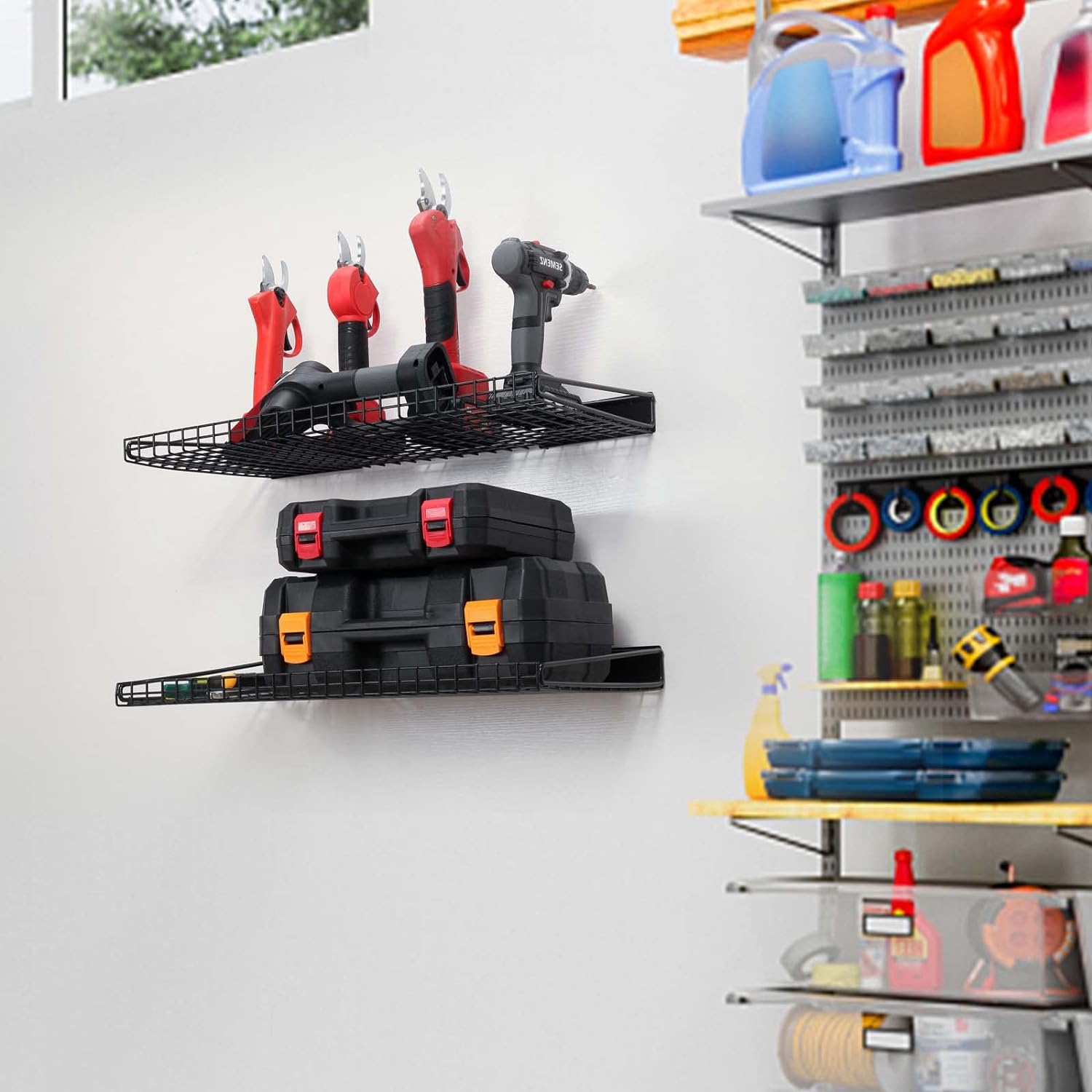 - WIDELY USED MANY OCCASIONS : The shelves wall mounted is great to store tools for you garage,basement,office,pantry,laundry room,living room, kitchen and bathroom, which help to free up your ground space and prevent your room and floor from clutter.
