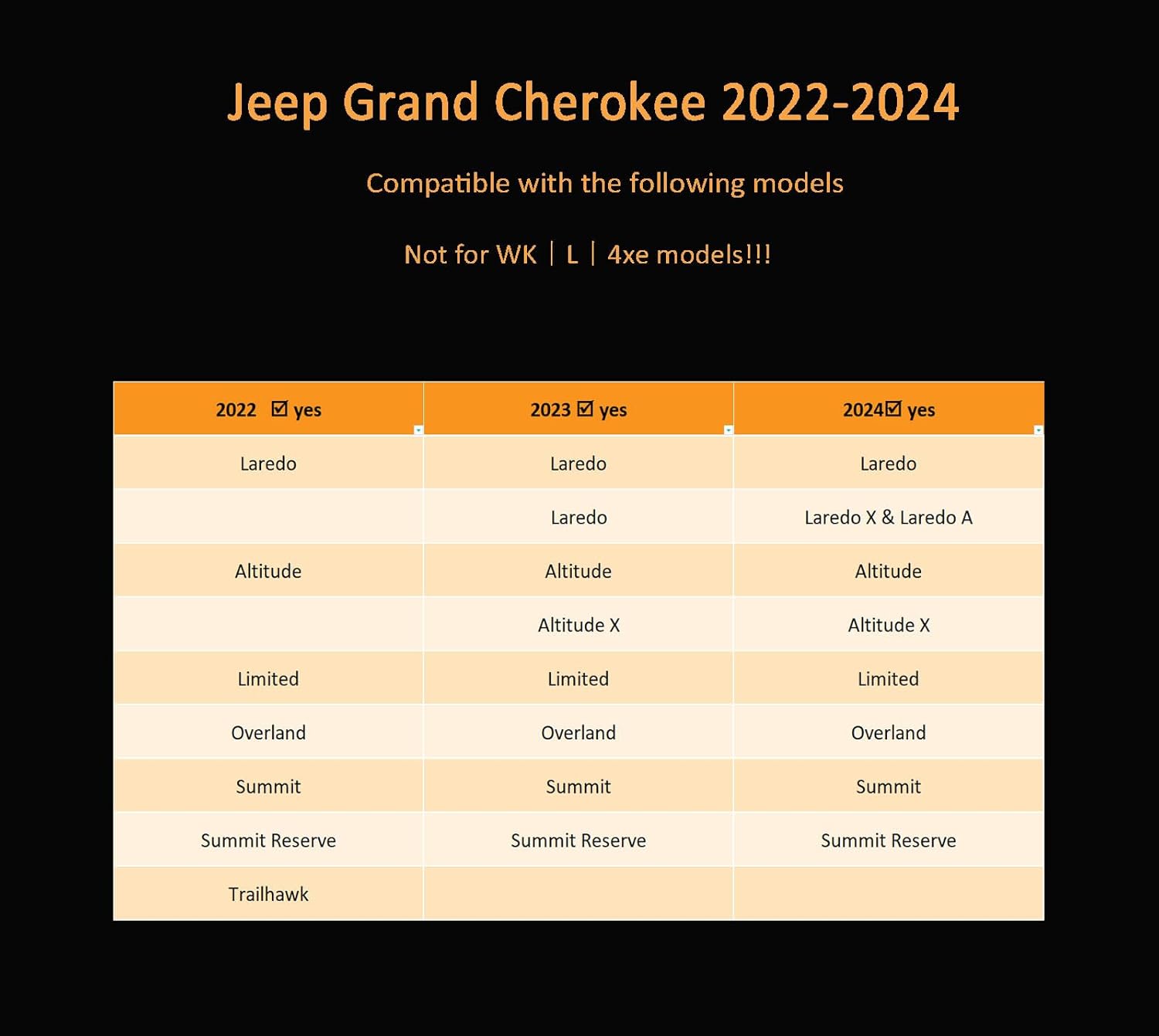 - 【Fit like a glove】Custom fit for Jeep Grand Cherokee 2022-2024. Binmotor auto floor mats are accurately scanned by professional 3D laser scanner to make the car floor mats and the original car data accurately match. What's more, details such as throttle and brake were noted during the design process, which will not affect you when you drive.