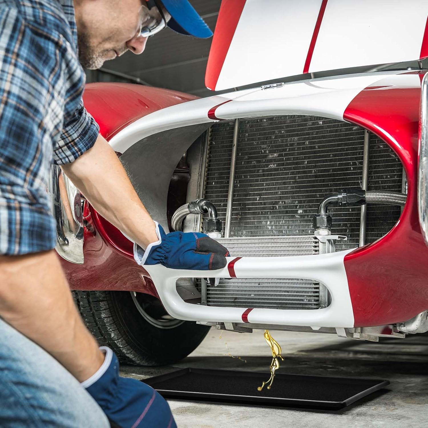 - Multi-functional Use: this oil drip tray is perfectly paired with a splash pad, resistant to engine oil, transmission oil, coolant, brake fluid, brake cleaner, gear oil, and other solvents; Additionally, it can be applied for BBQ grease splatter prevention, leaks from washing machines or refrigerators, and more; Its versatile design offers multi-purpose convenience for your needs