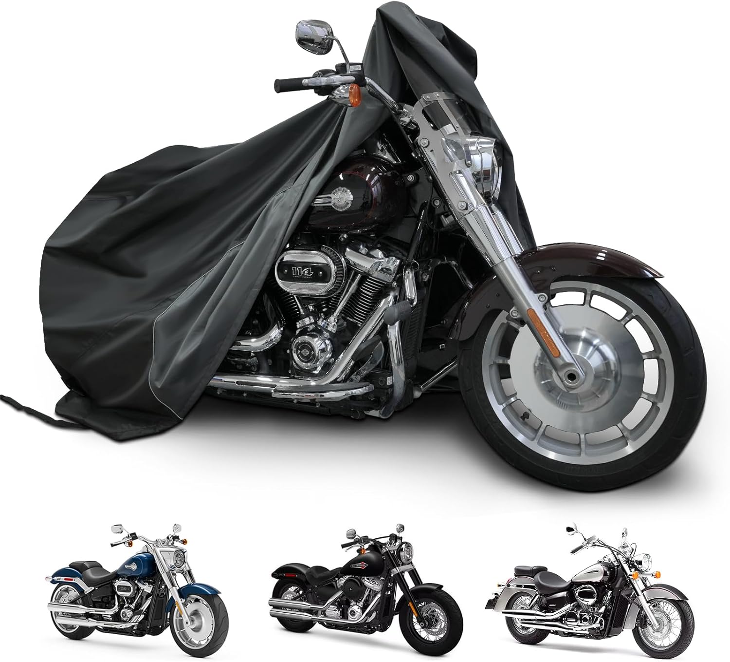 Motorcycle Cover for Cruiser Models Harley Davidson Iron 883, Fat Boy, Softail Slim, Softail Standard, Street Bob 114, Sport Glide, and Most Motorcycles - Waterproof Motorcycle Cover Outdoor Storage