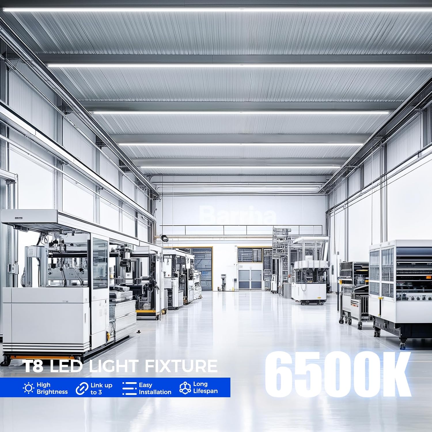 - Extendable & Linkable Design: It simplifies wiring and enhances the aesthetic of your ceiling. You can connect a maximum of 3 of these 8FT LED shop lights using the provided connectors or connector cords.This ensures optimal functionality, safety, and a sleek appearance. Expand your lighting setup effortlessly while maintaining a clean and organized space.Compatible with Barrina GM Series Cords