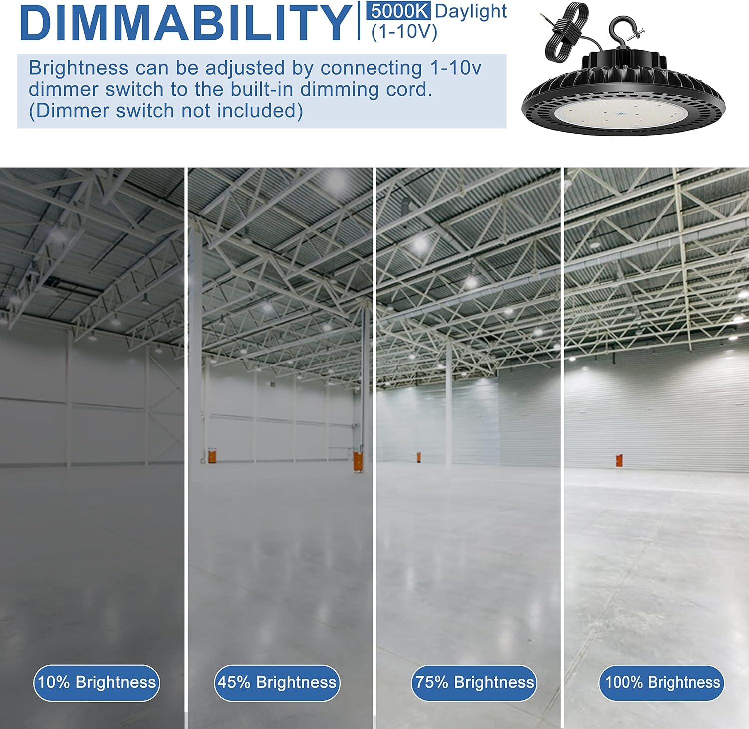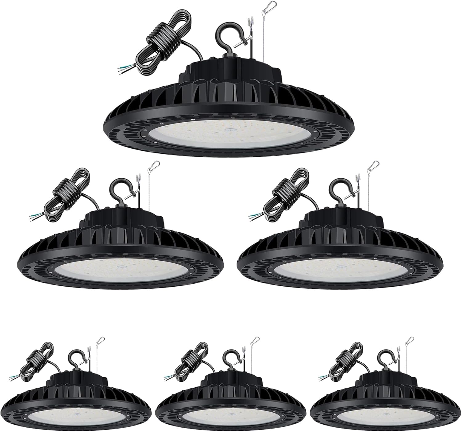 - ☀Wide Application: UFO led light are commercial grade, meet both dry and wet environments, garages, barns, utility rooms, warehouses, stores, basements, high bay factories, logistic centers, exhibition halls, stadiums, mines, toll booths, supermarkets, parking lots, gyms, bays, laundries and more.