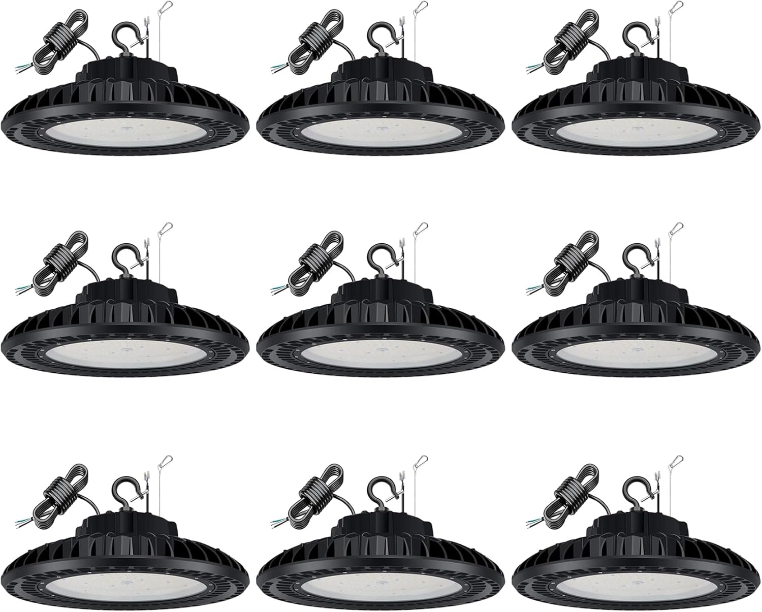 9 Pack 300W LED High Bay Light, UL&DLC Listed 41000LM Dimmable UFO High Bay LED Lights for Warehouse, 5000K Daylight IP65 Waterproof Commercial Bay Lighting 𝐀𝐂𝟏𝟎𝟎-𝟐𝟕𝟕𝐕