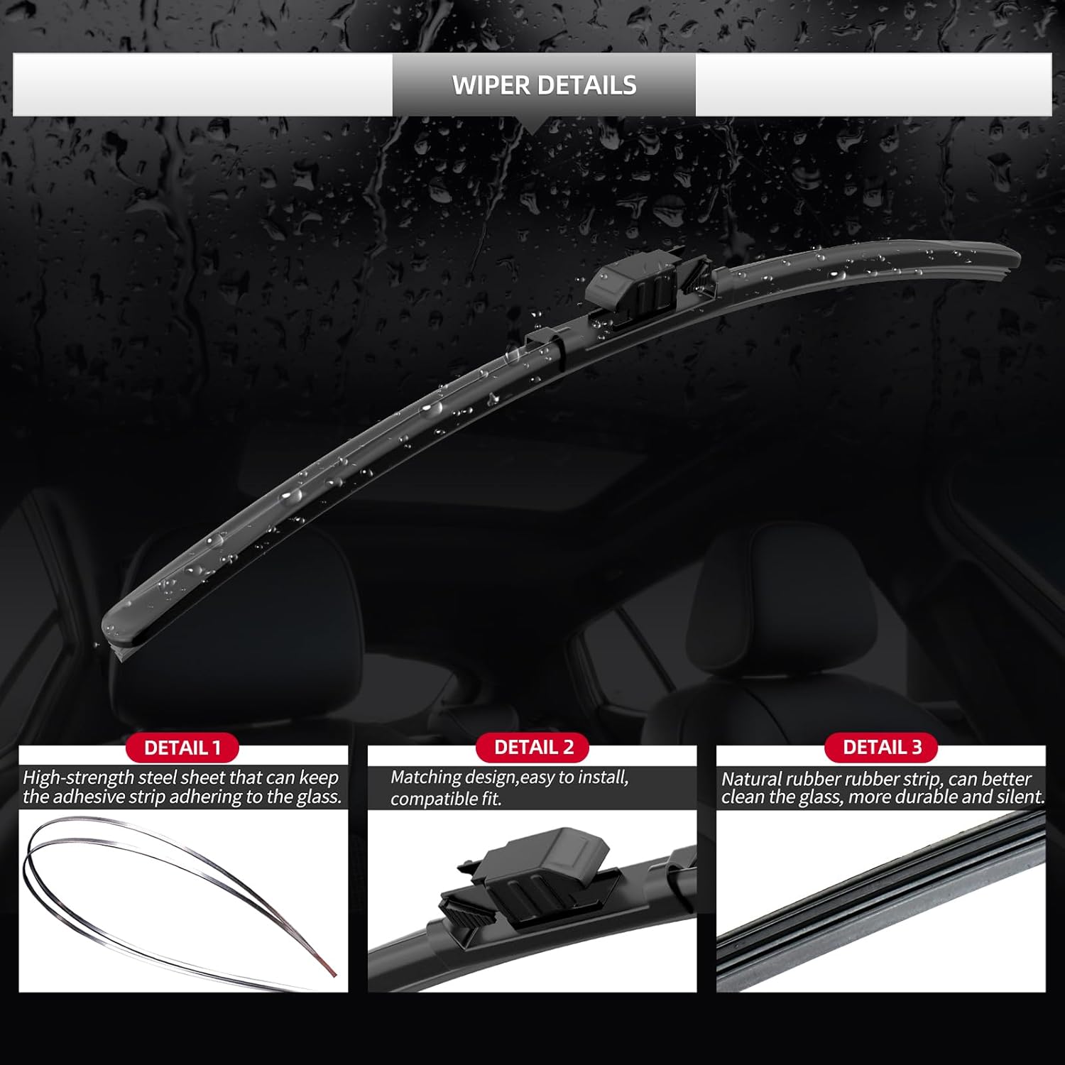 - Packing List: 3 Pieces of front and rear windshield wipers