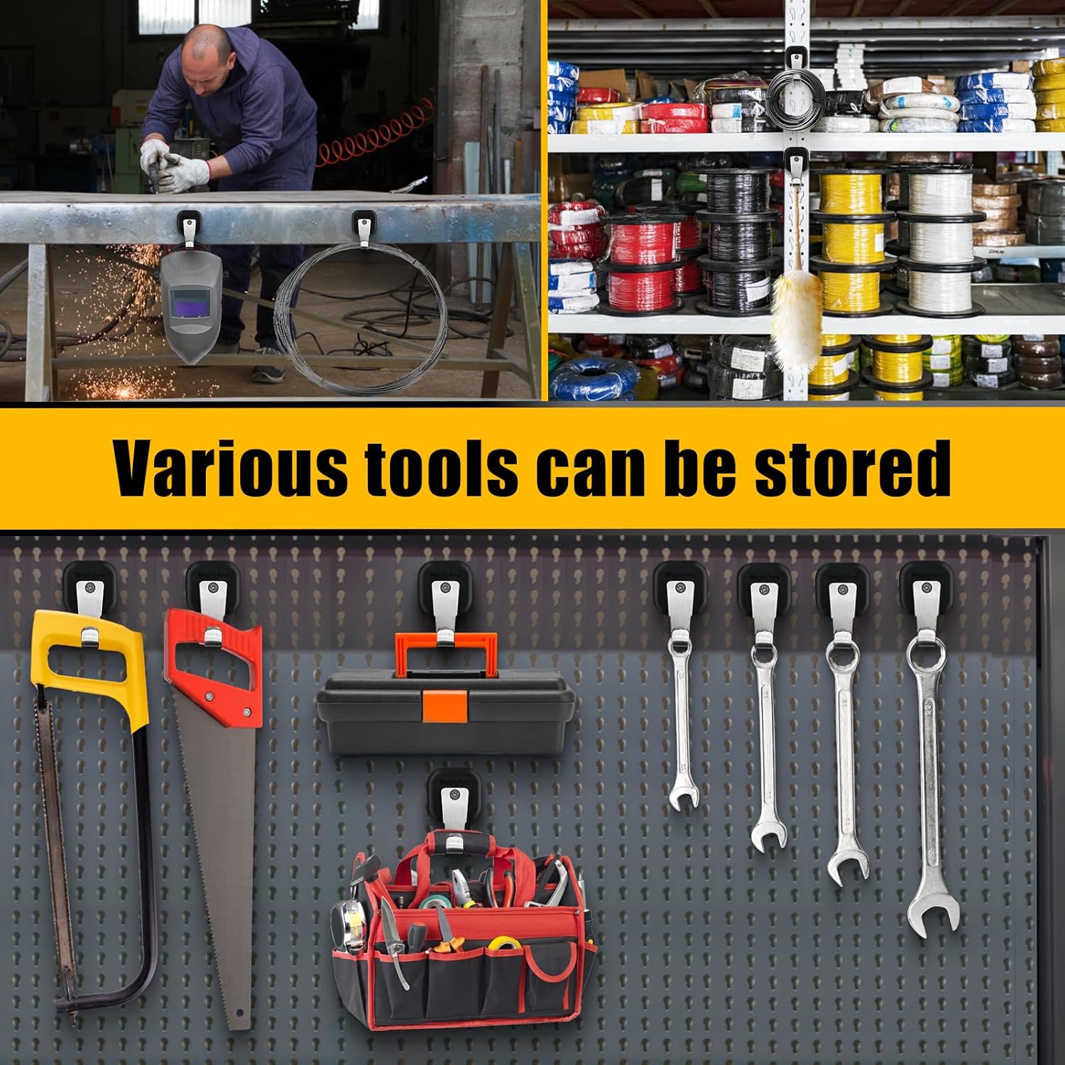- Multipurpose Functionality: Hang and organize tools, shovels, paint cans, coats, hats, gym bags, mops, brooms, keys, kitchen utensils, wreaths, Christmas lights, and more, creating extra storage space wherever needed.