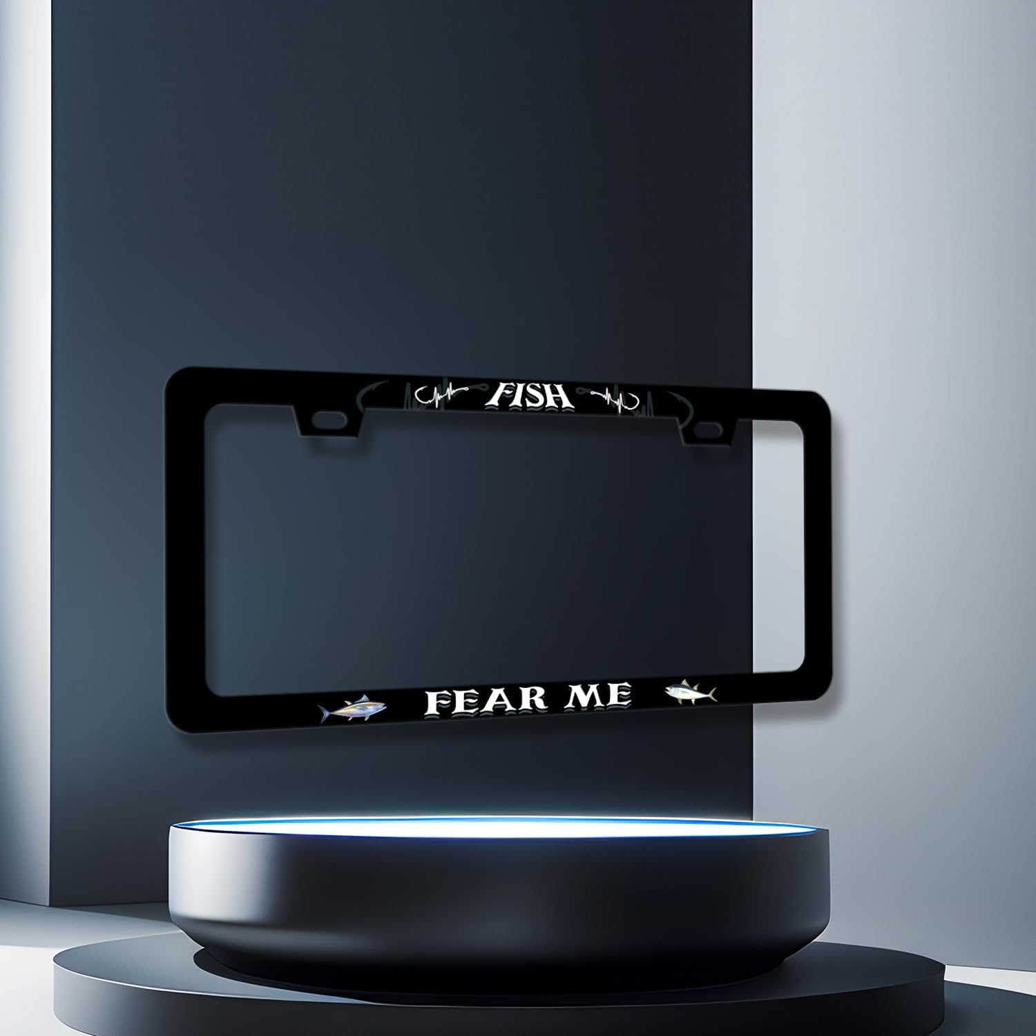 Fish License Plate Frame Fish Fear Me License Plate Holder for Personalized Car Decorative Stainless Steel Funny Text License Plate Fishing Auto Part Women Men with Screws 12.2" x 6.2"