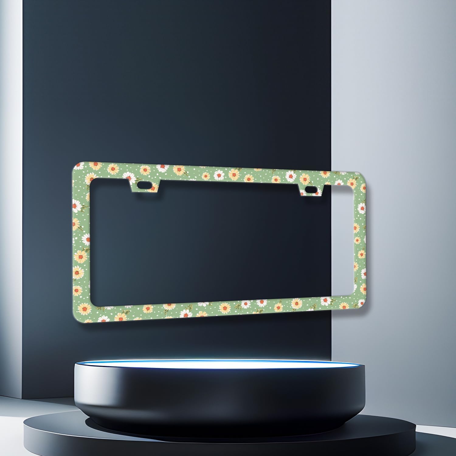 Cute Daisy Floral License Plate Frame Beautiful Flowers License Plate Holder for Personalized Car Decorative Stainless Steel Colorful License Plate Daisy Auto Part with Screws 12.2" x 6.2"