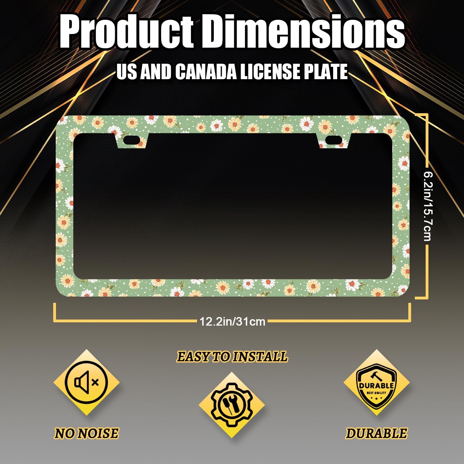 - The size of the license plate frame is: 12.3" x 6.3" , it fits all standard size US and Canada vehicle license plates.the stylish design frame fits ly on your car license plate.
