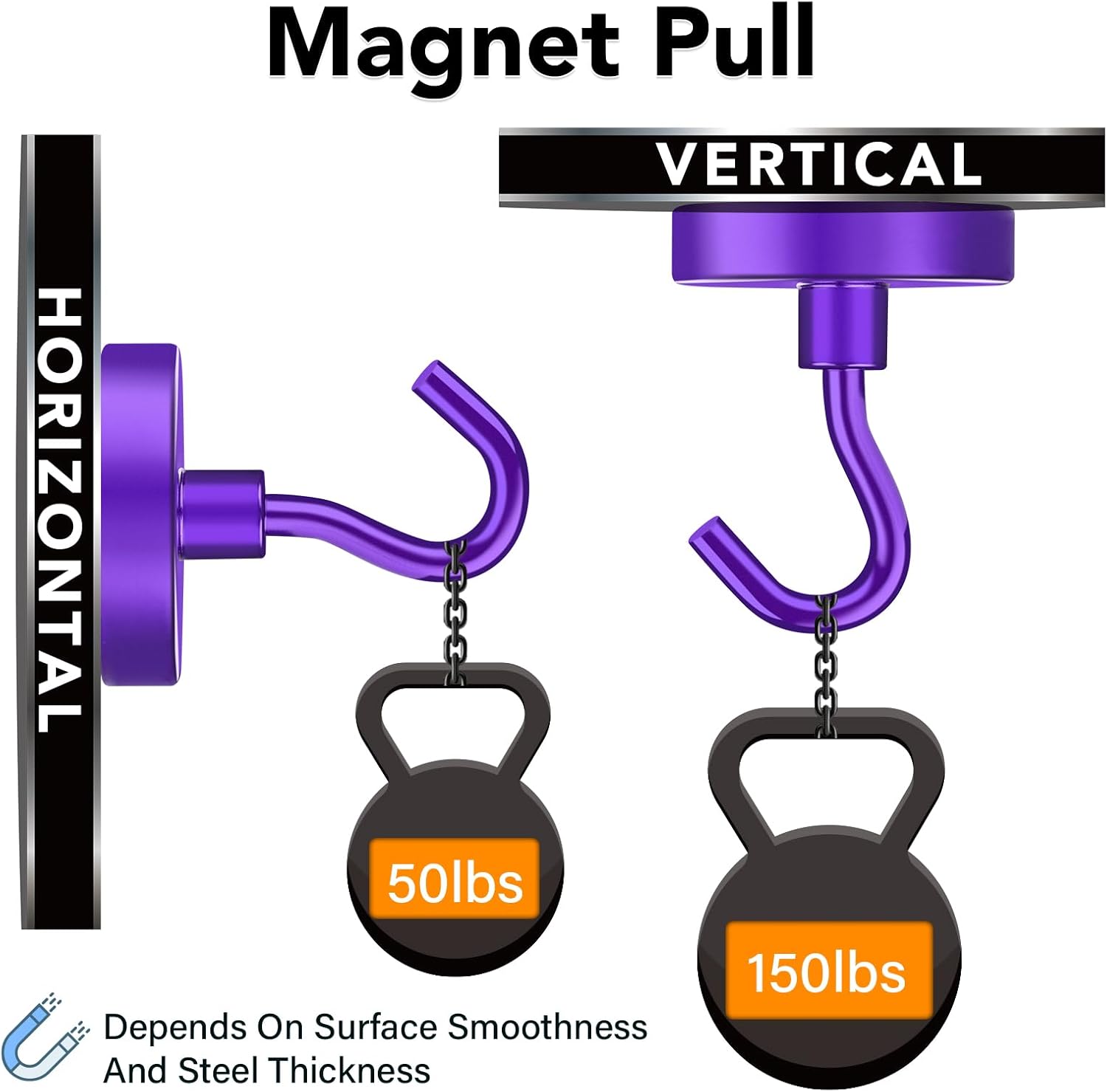 - 【Super Powerful Magnet Hooks】- The strong magnets with hooks are made of neodymium magnets offer more than 150lbs attractive force on horizontal application and the power reduced by 2/3 on horizontal hanging. Cruise essentials and cruise accessories must have