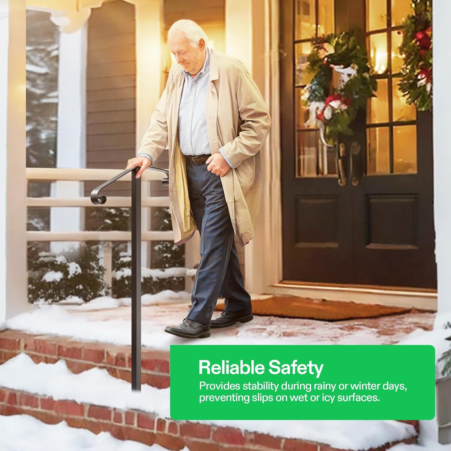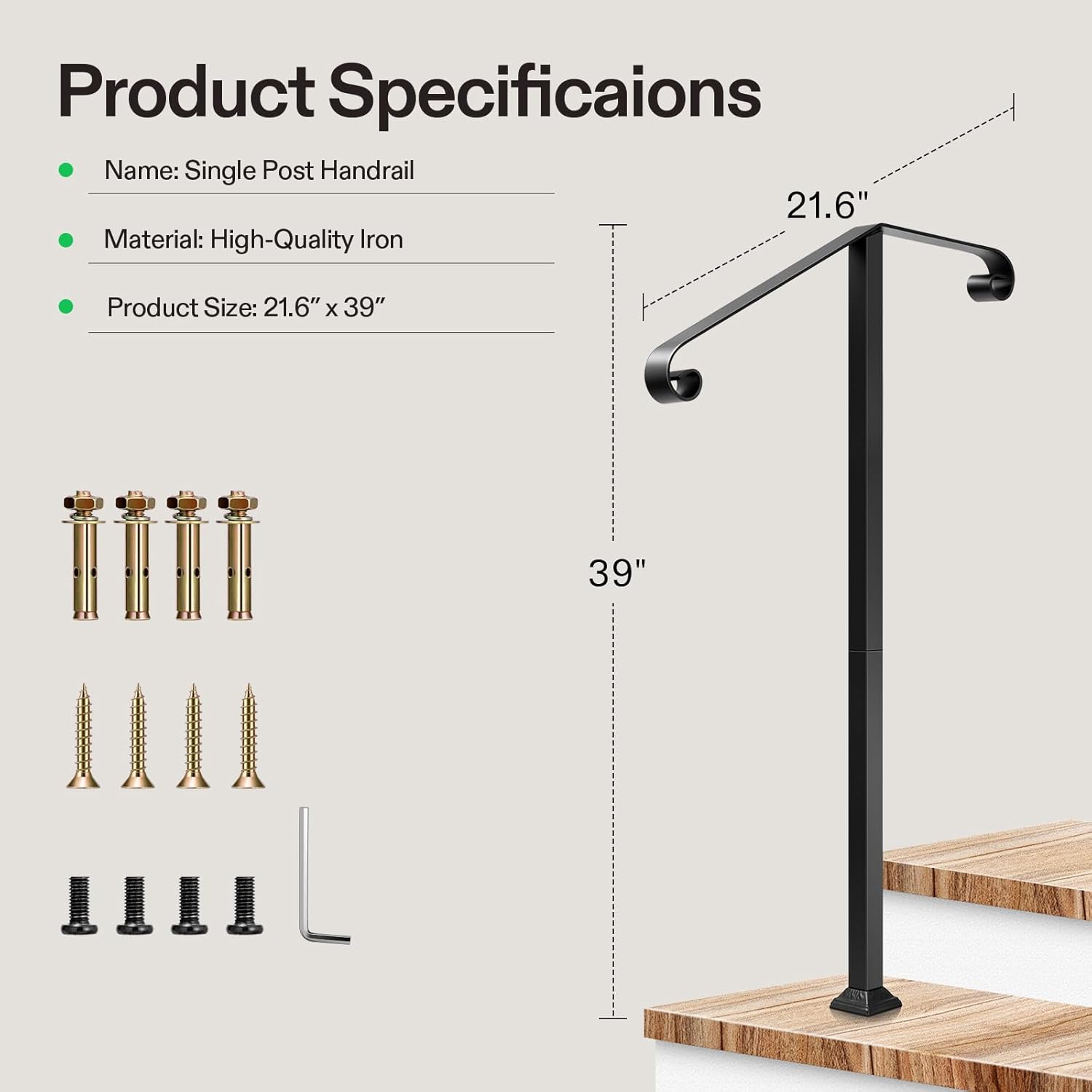 - Sturdy & Durable: Made of premium iron for stability and durability, this handrail can withstand harsh weather conditions, including rain and snow