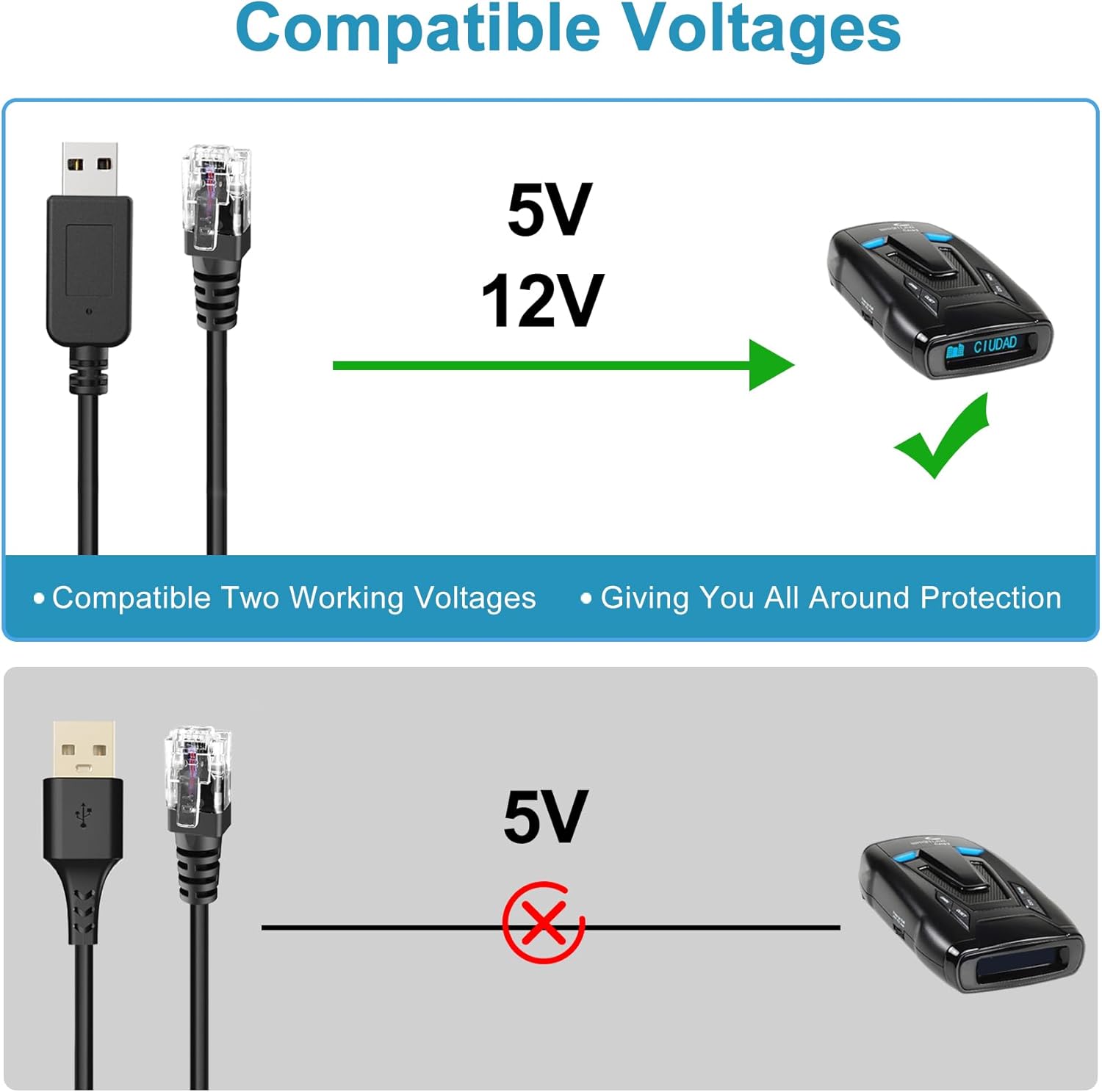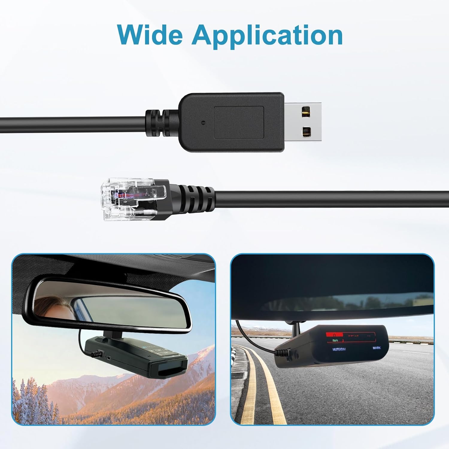 - ✅High technology:Radar detector cable are designed with integrated molding at the USB A port and RJ11 port,easy to plug and unplug,strong and durable,longer life.