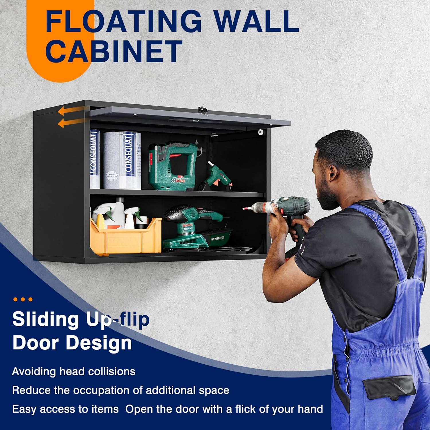 - 『SLIDING Up-Flip DOOR』 Yizosh wall cabinet features a special opening and closing door design. Sliding Up-Flip door allows you to open the door easily and frees up your hands to access the item in the cabinet more conveniently. The door can slide into the cabinet, which can prevent accidental head-banging