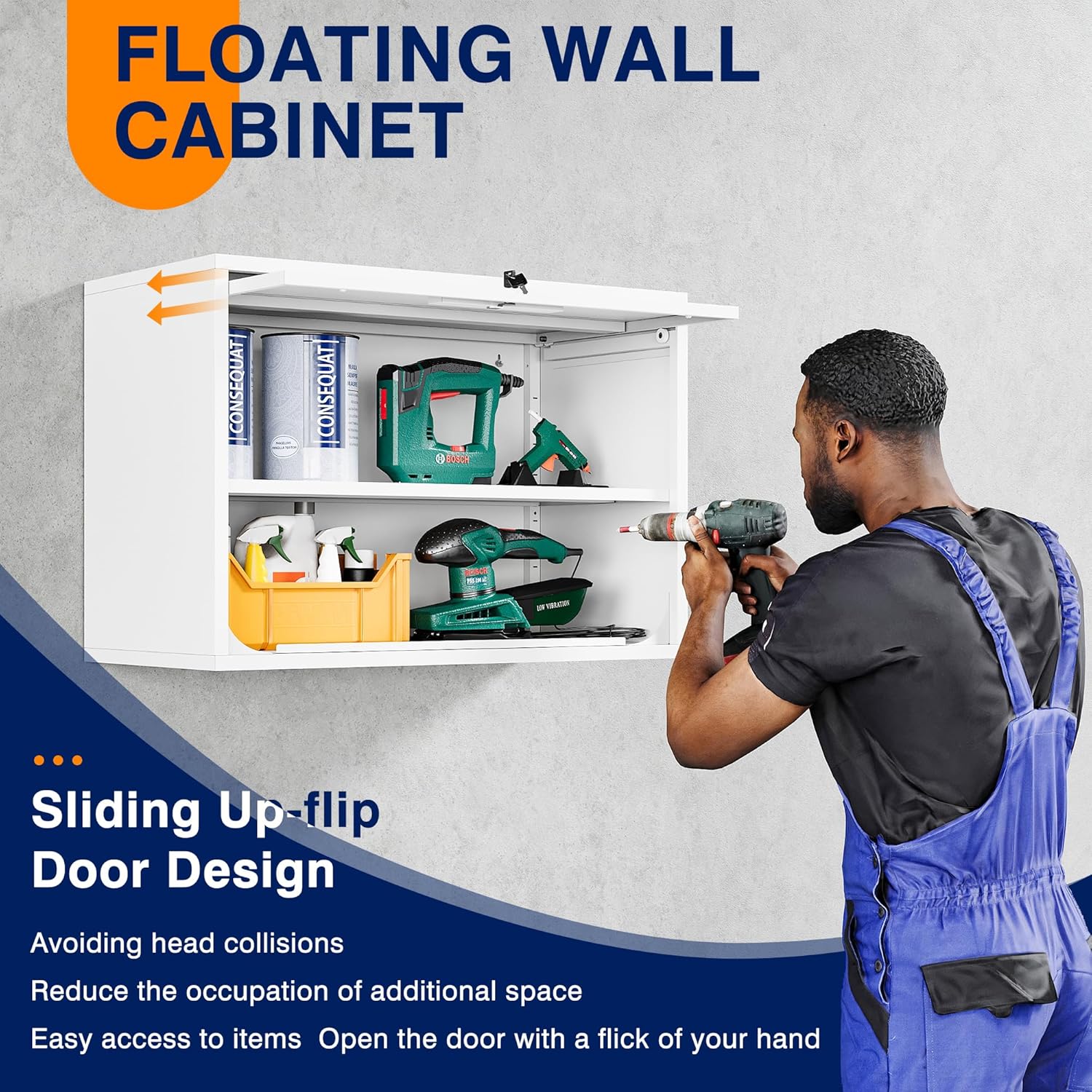 - 『SLIDING Up-Flip DOOR』 Yizosh wall cabinet features a special opening and closing door design. Sliding Up-Flip door allows you to open the door easily and frees up your hands to access the item in the cabinet more conveniently. The door can slide into the cabinet, which can prevent accidental head-banging