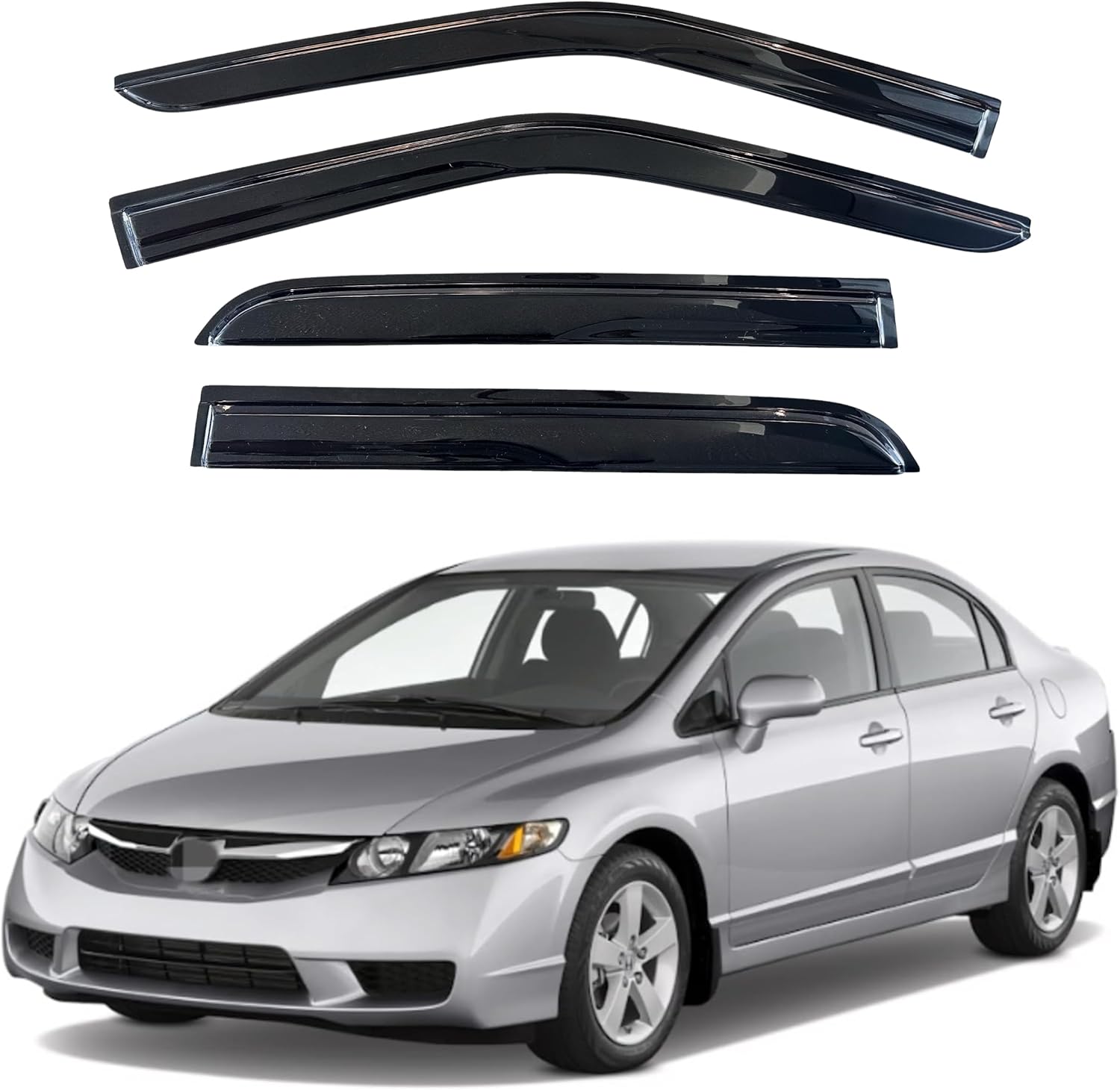 - 【Perfect Fit】KPY window visors rain guards vent deflectors compatible with Honda Civic Sedan 2006 2007 2008 2009 2010 2011 (Mugen Style)