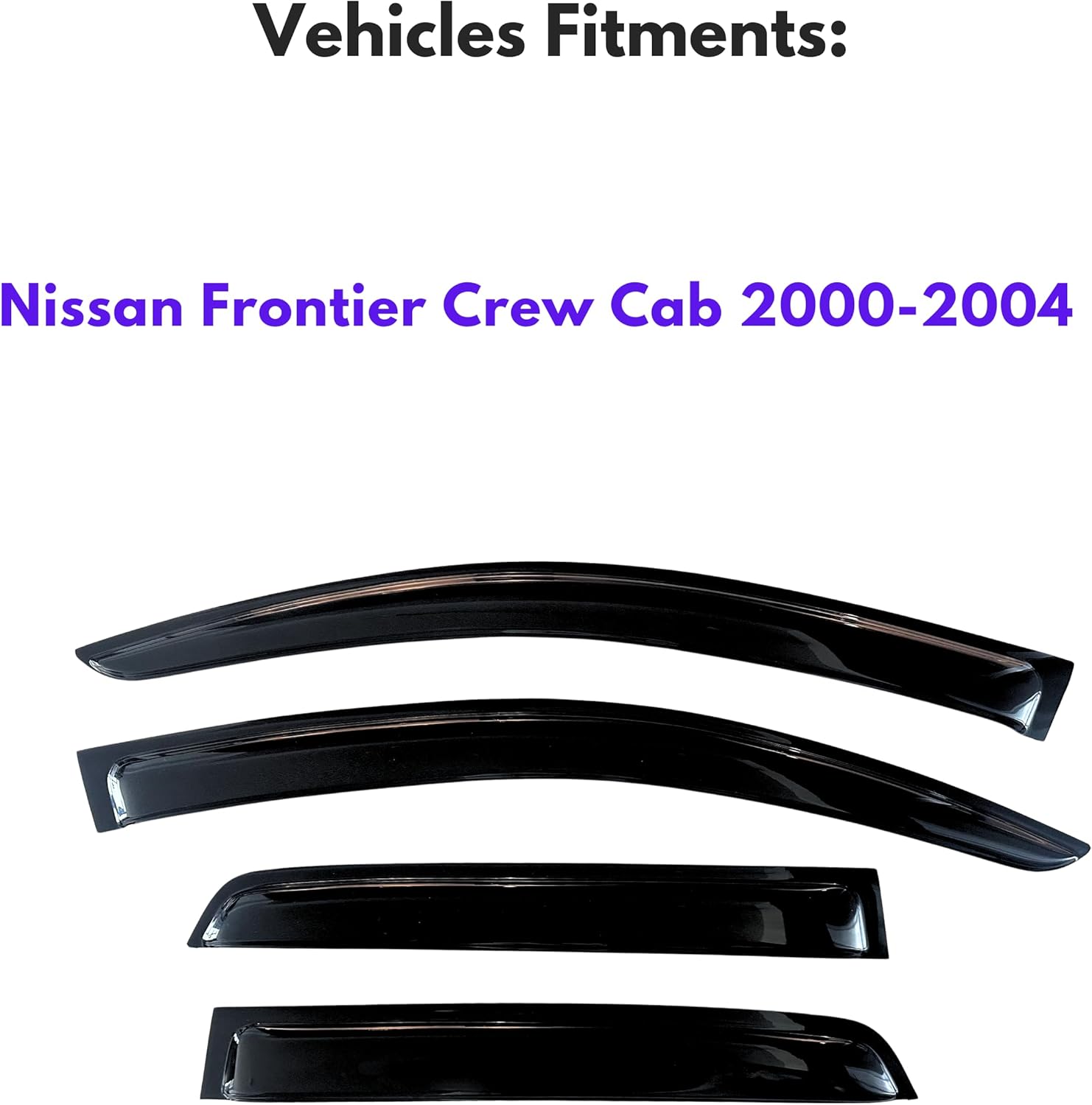 - 【Perfect Fit】KPY window visors rain guards vent deflectors compatible with Nissan Frontier Crew Cab 2000 2001 2002 2003 2004