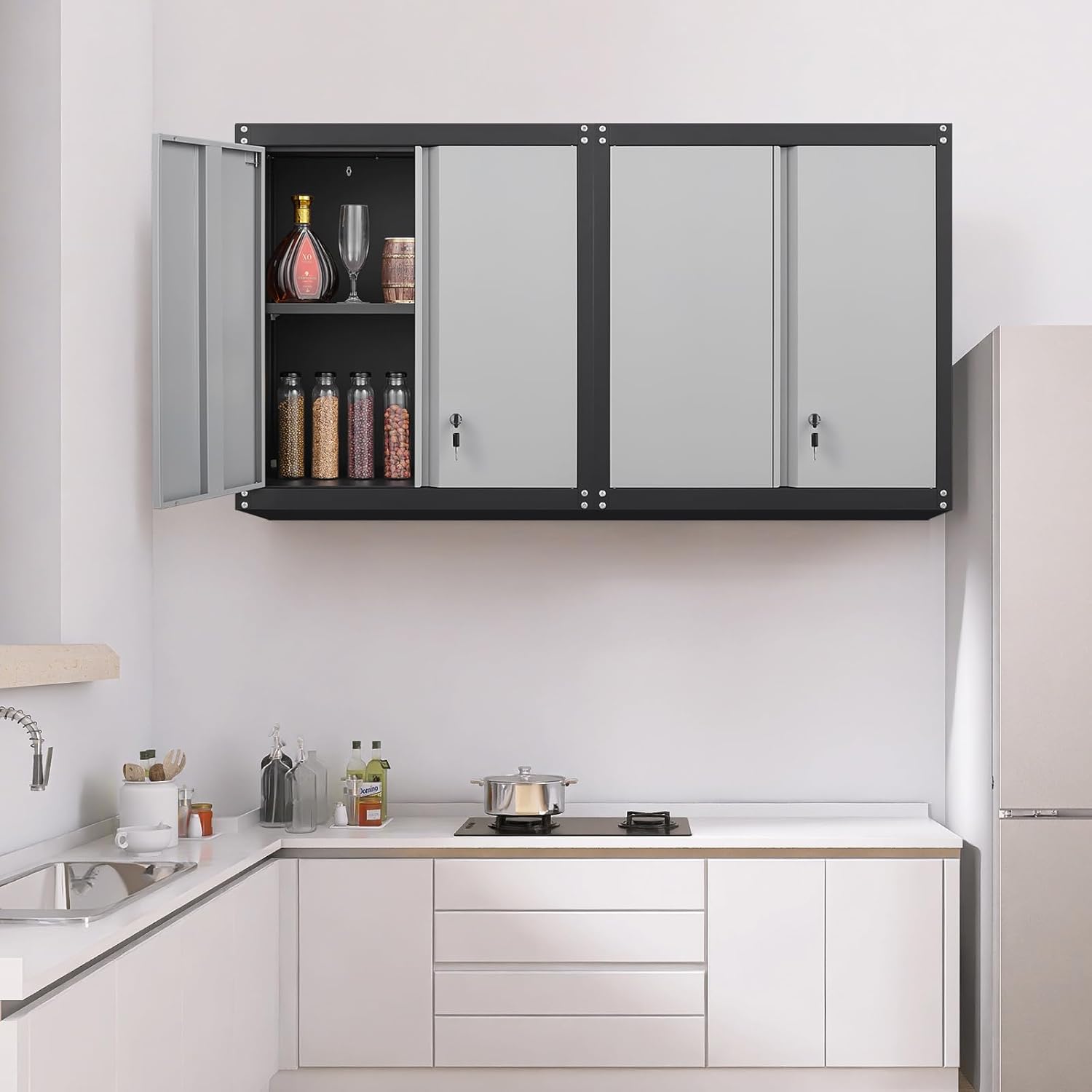 - 【Quality Wall Cabinet for Garage】This metal wall cabinet is made of thickened alloy steel plate, built to last with strong and durable structure