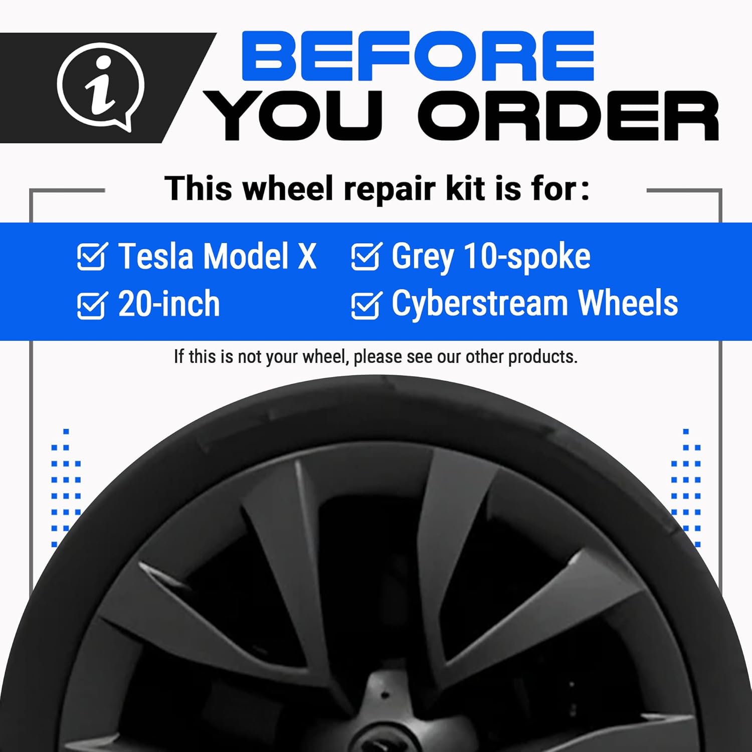 Premium Tesla Wheel Curb Rash Repair Kit for Model X 20-inch Grey Cyberstream Rims - DIY Kit with Color-matched Touch Up Paint - Made in USA