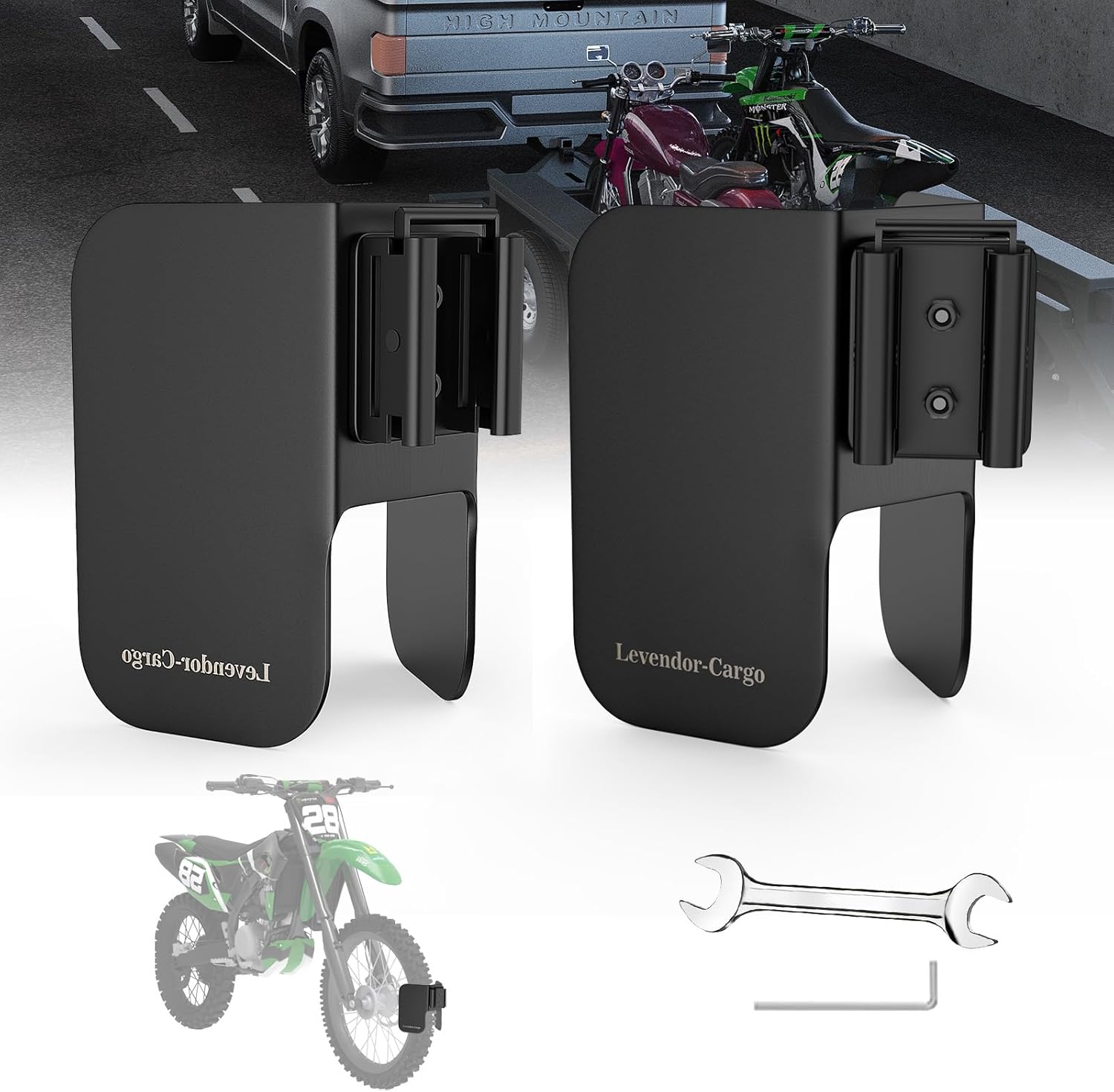 - You will received: 2 x E-Track Motorcycle Chocks,2 x E-Track Mounts, 2 x 45 Degree Angle Adapter, 8 x Screw with Nuts, 1 x Wrench, 1 x Hexagonal Wrench