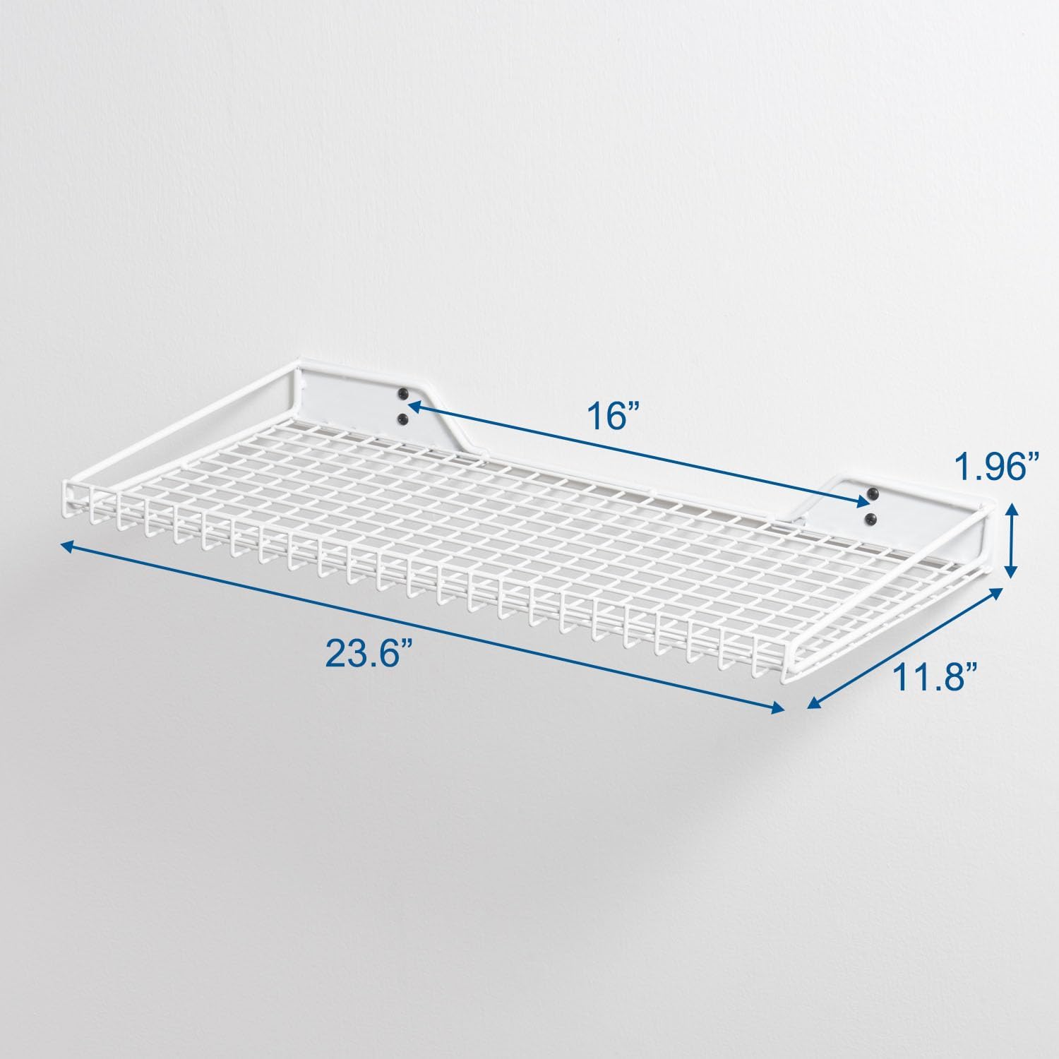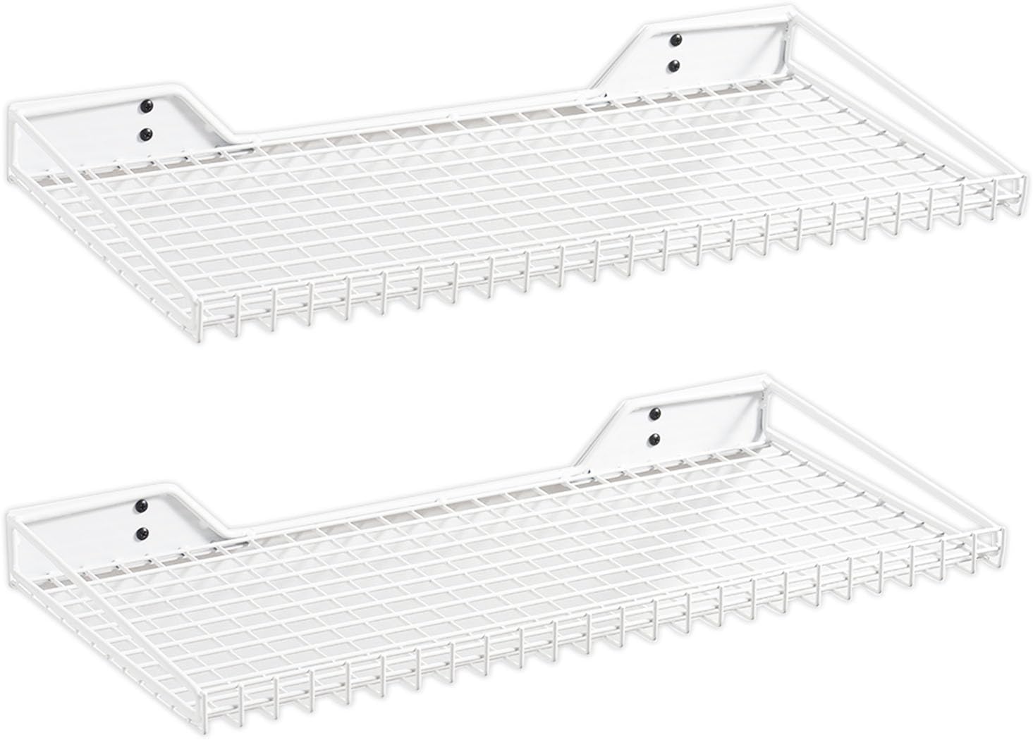 Wallmaster Heavy Duty Garage Wall Shelving 2 Pack 23.6"x11.8" Metal Wire Shelves Wall Mount Mesh Storage Rack for Garage, Office, Basement and Kithcen, max Load 65 lbs (White)