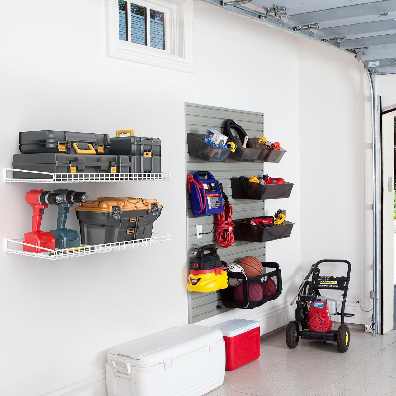 - WIDELY USED MANY OCCASIONS : The shelves wall mounted is great to store tools for you garage,basement,office,pantry,laundry room,living room, kitchen and bathroom, which help to free up your ground space and prevent your room and floor from clutter.