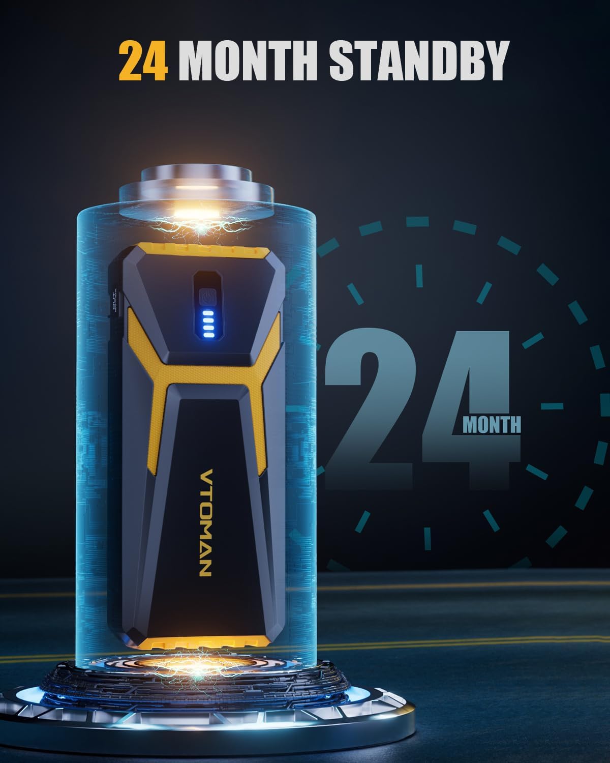 - 10 Most Advanced Safety Technologies 2.0 - VTOMAN car battery jump starter pack prioritizes safety and ease of use. With 10 built-in safety features, it eliminates concerns about improper usage and sparks, ensuring your complete peace of mind when using our product. Moreover, our error-free smart jumper cables are equipped with all-metal clamps to safeguard against damage caused by extended use.