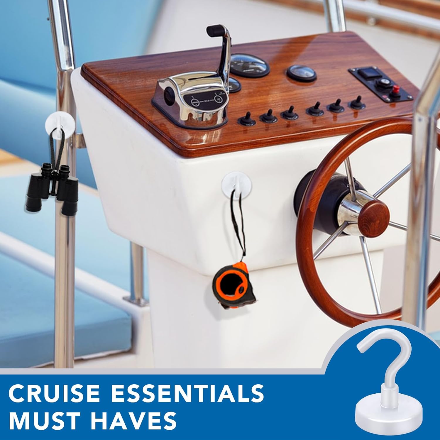 LOVIMAG Cruise Must Haves, 80Lb Magnet Hooks, White Cruise Magnets for Door, Cruise Door Magnets, Magnetic Hooks for Hanging-6Pack