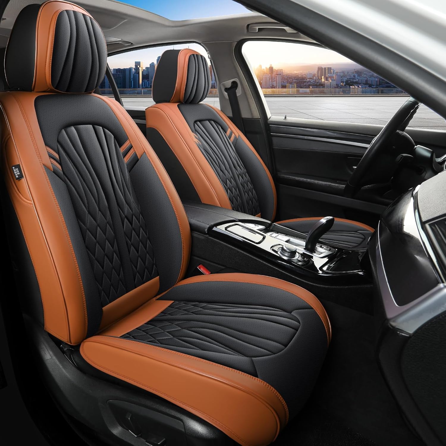 Leather Car Seat Covers,Car Seat Protector Waterproof,Seat Covers Full Set, Car Seat Protectors 5 Seats,Automotive Seat Covers Fit Most Cars Black&Brown