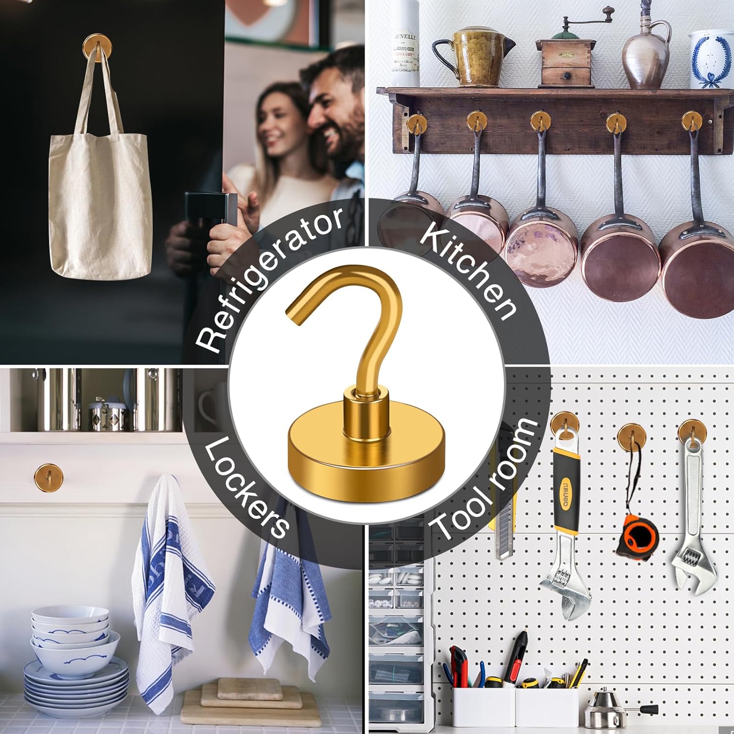 - 【Excellent Layer Coating】- Our metal magnetic hooks come with an excellent triple-layer coating of Ni+Cu+Ni, which greatly reinforces their corrosion resistance. This coating is the best available, providing a shiny and rust-resistant surface that helps prevent chipping or cracking. The coated steel cup also provides protection for the heavy duty magnetic refrigerator hooks. With this excellent layer coating, you can trust that our magnetic hanging hooks are safe to use and will last a long time.