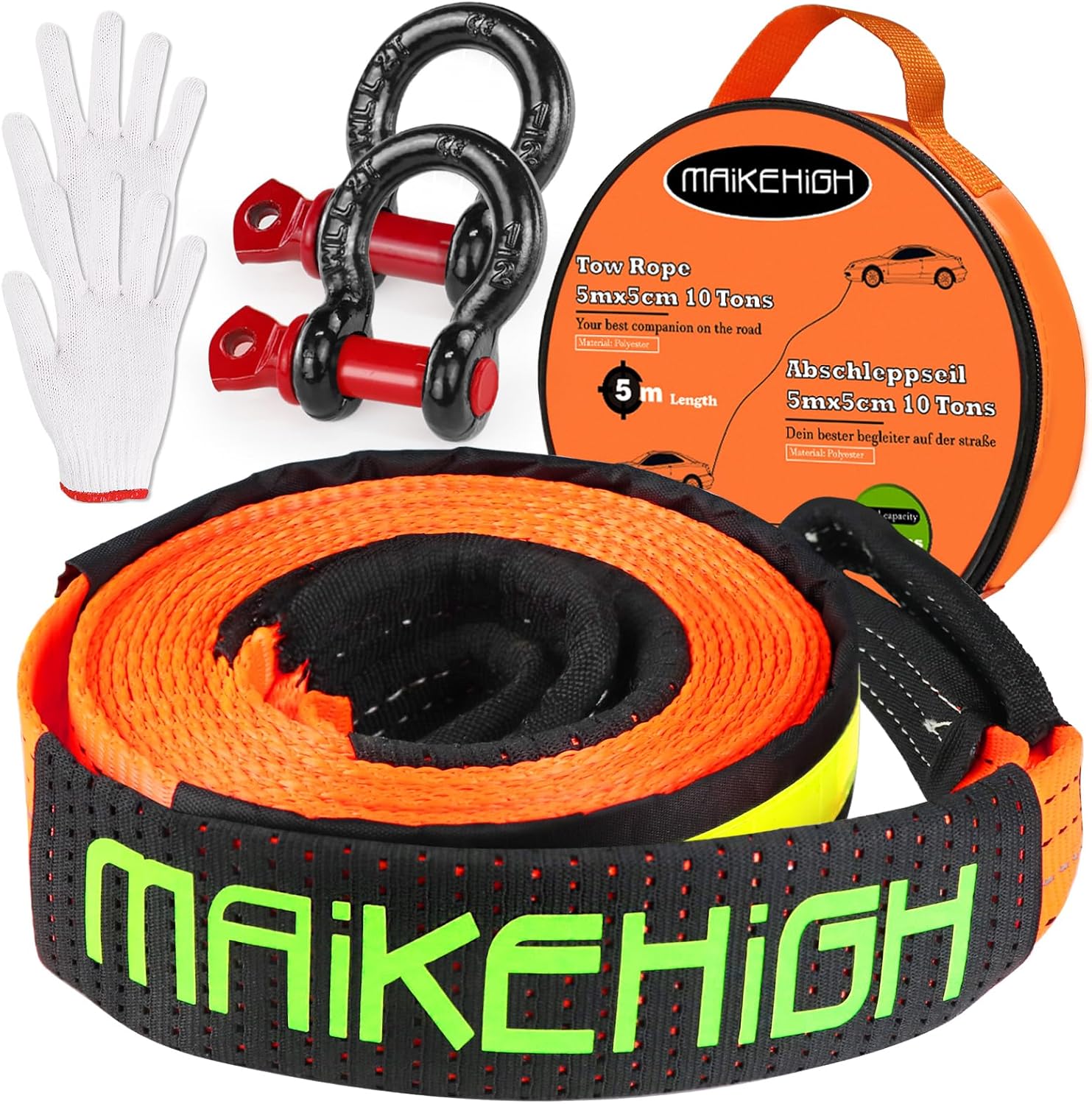 - 🚗【Professional Recovery Strap Kit】: MAIKEHIGH heavy duty recovery strap set includes a sturdy emergency rescue strap, 2 D-ring shackles, 2 protective gloves, and a storage bag. Easy to store in your trunk, toolbox or backpack, reparing for emergencies and contingencies.