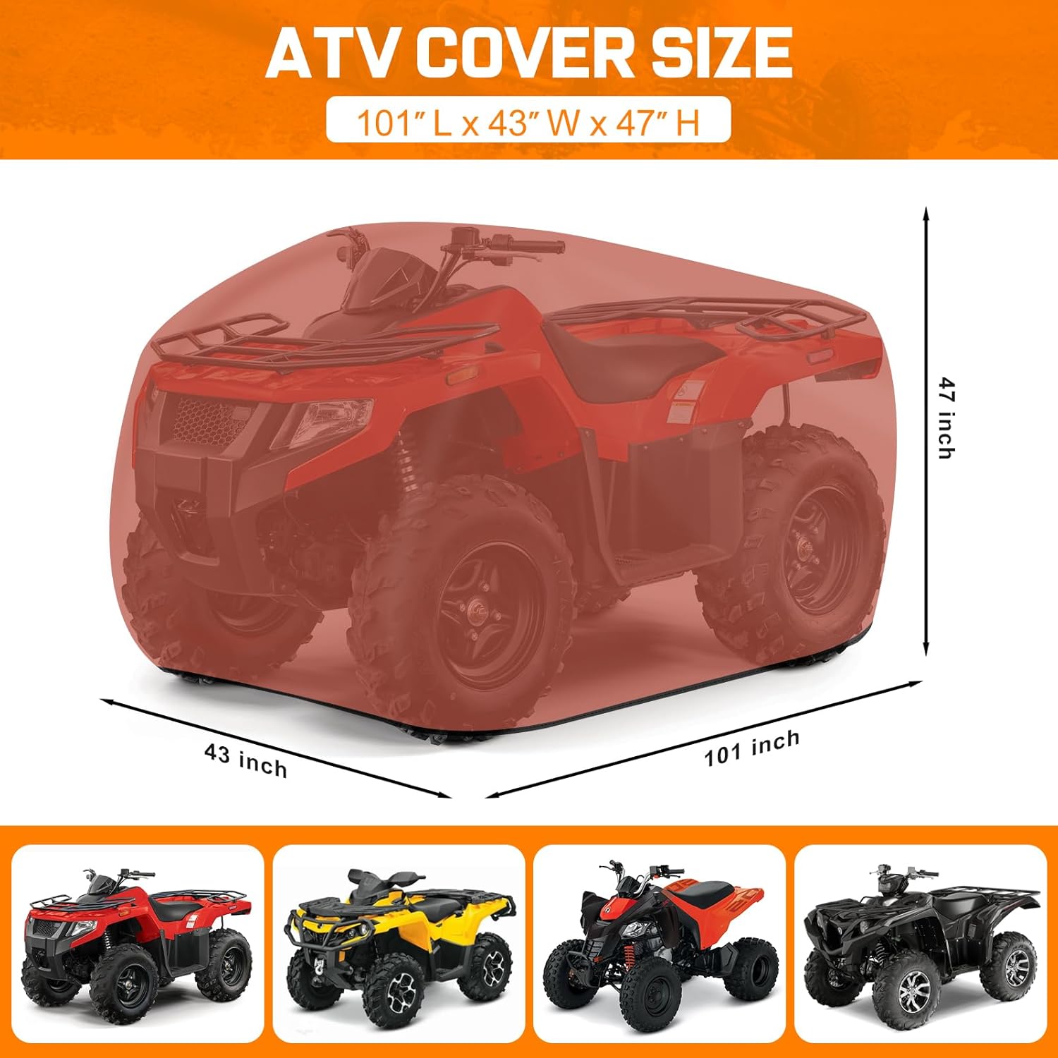 - Coverage : Full exterior coverage for 4 wheelers ATV, universal fit for most brands