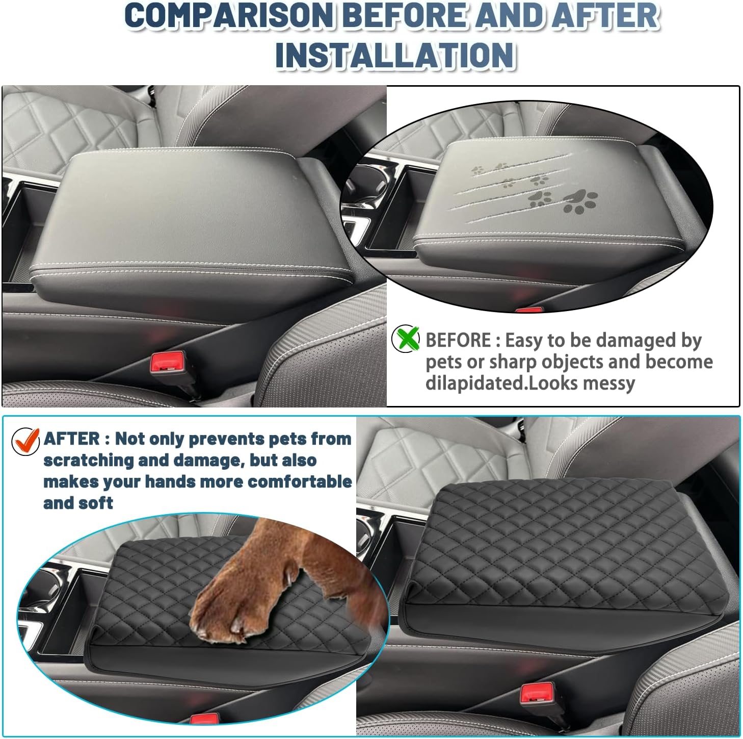 - ►QUALITY ASSURANCE - Our all armrest cover cushion undergo a strict quality test,make sure car interior protection accessories armrest seat box cover have better quality. If you have any quality problems and questions about the products, you can contact us at any time, and we will reply to you within 24 hours.