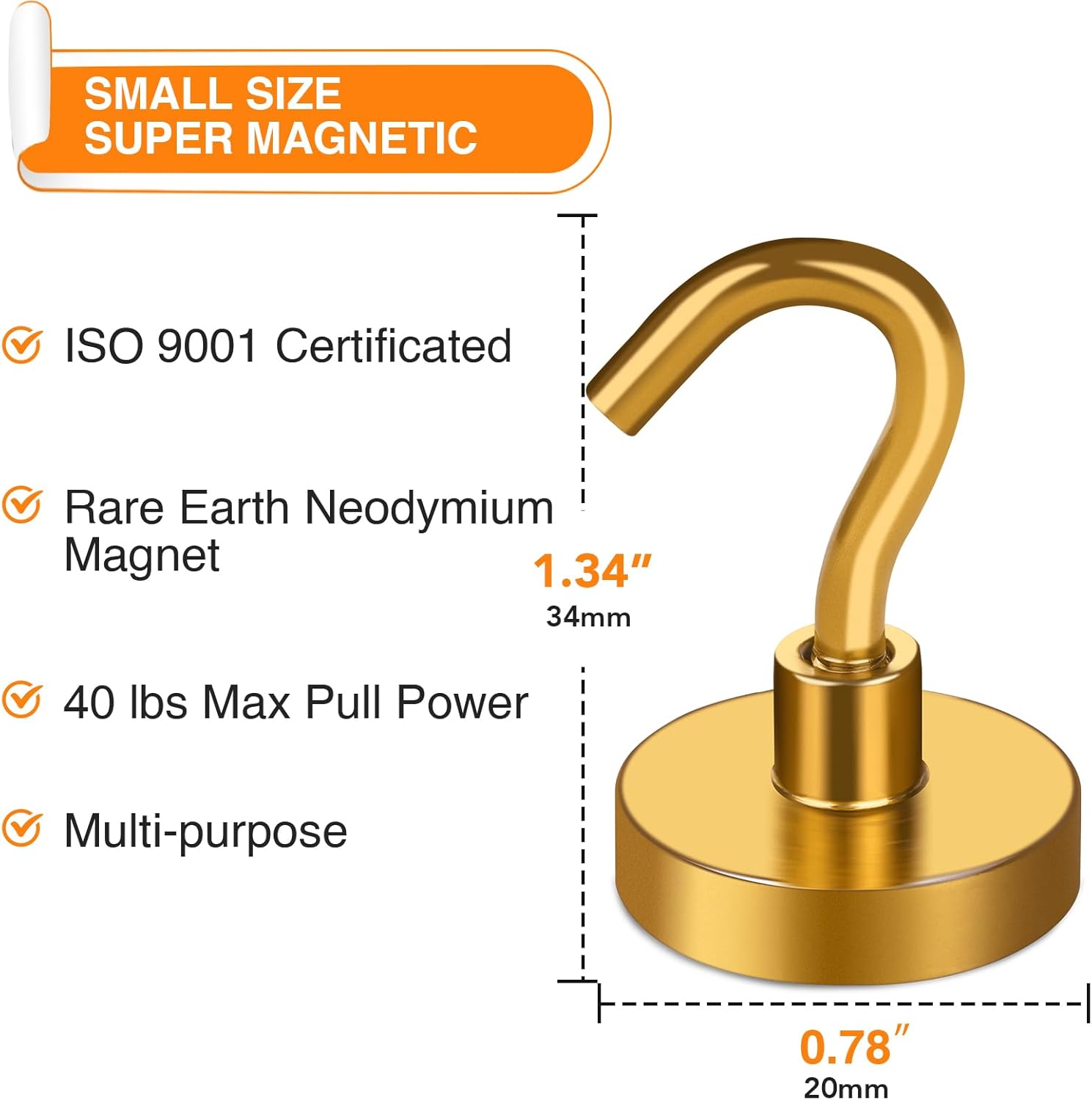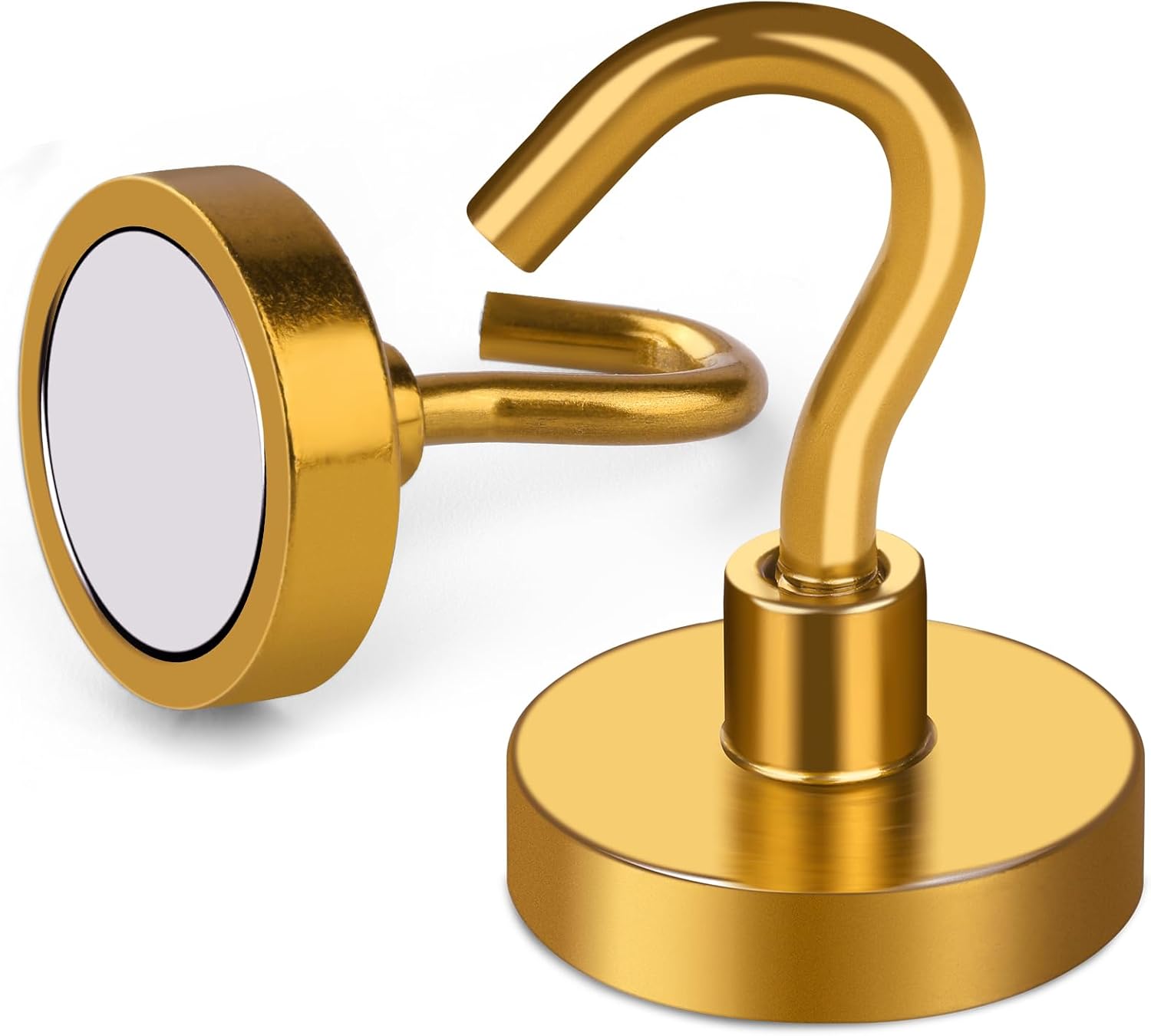 - 【Excellent layer Coating】- Our metal magnetic hooks come with an excellent triple-layer coating of Ni+Cu+Ni, which greatly reinforces their corrosion resistance. This coating is the best available, providing a shiny and rust-resistant surface that helps prevent chipping or cracking. The coated steel cup also provides protection for the heavy duty magnetic refrigerator hooks. With this excellent layer coating, you can trust that our magnetic hanging hooks are safe to use and will last a long time