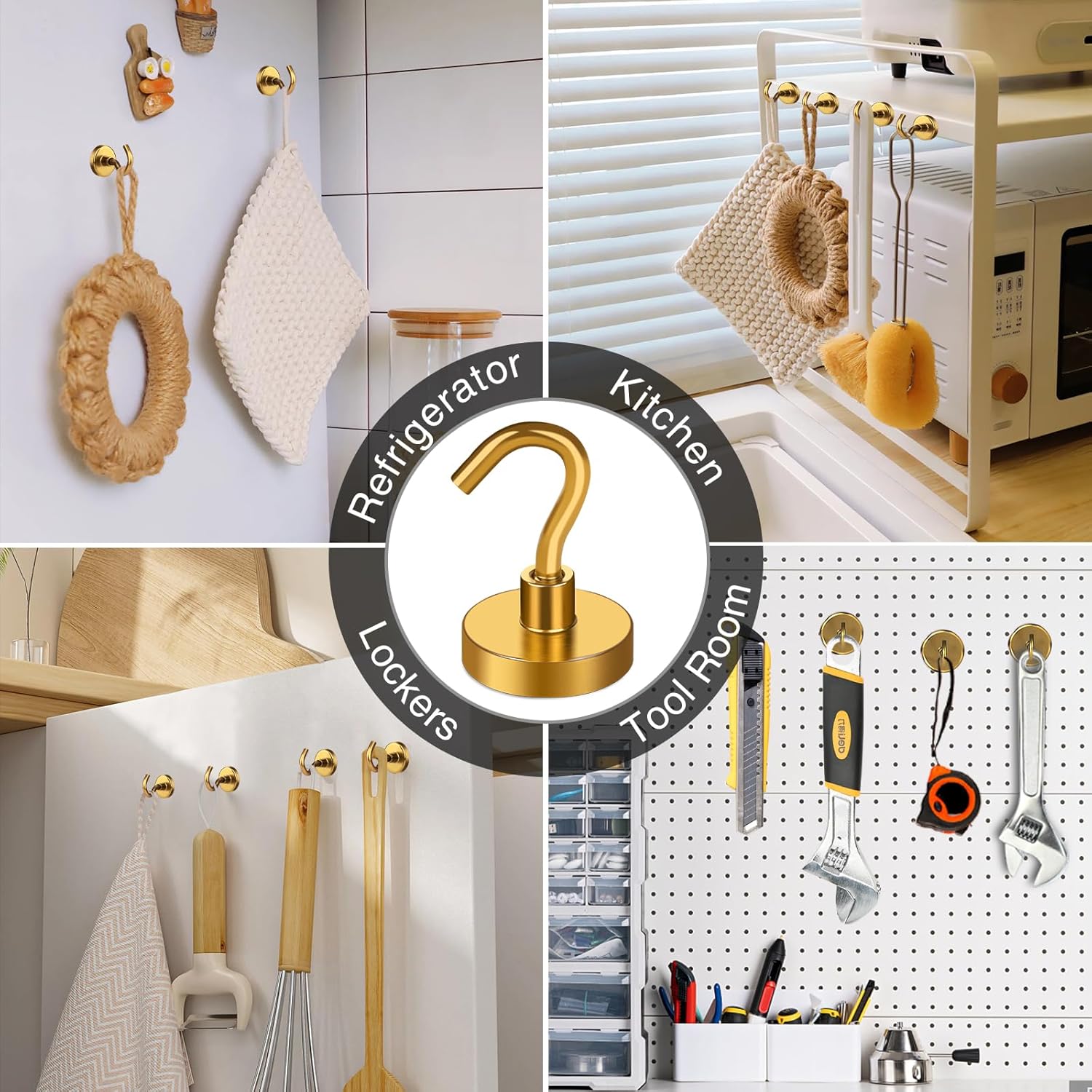 - 【Useful Magnetic Hangers】- Strong magnetic hooks are incredibly useful and versatile! They can be easily removed and fit in anywhere, making them perfect for hanging a wide range of items such as Christmas gifts, kitchen utensils, coats, keys, clothes, barbecue grills, garlands, gardening tools, and more. You can use them in your refrigerator, kitchen, or even outside for various applications. With our magnetic hangers, you have a convenient and flexible solution for hanging all sorts of items