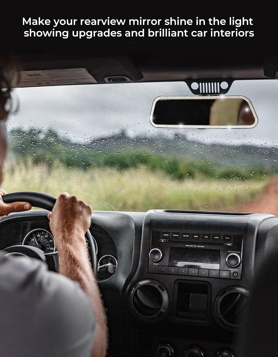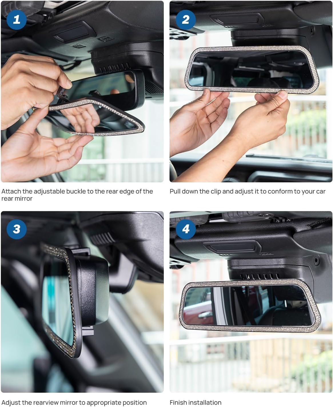 - MODERN FASHION DESIGN: The edges of the rearview mirror are decorated with bling rhinestones, it is shining in the light, showing a high-grade and fashionable car interior. Especially suitable for women it, would add color to the interior of your love car and make driving fun