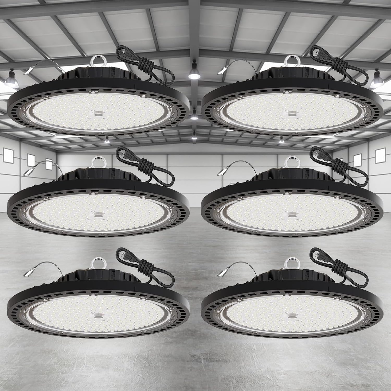 - 【Simplified Installation】Includes 5ft UL-listed cord + US plug + safety cable. Mounts in minutes without electrician - compatible with most commercial bay lighting setups