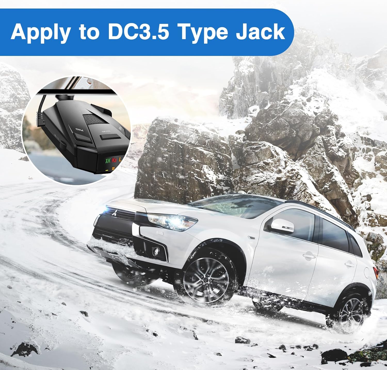 - ✅【Extension Power Cord Length 】Extended 6.5ft DC3.5 interface allows placement for Cobr Uniden Whistler Radenso radar detector on your windshield radar mount or mirror mount.