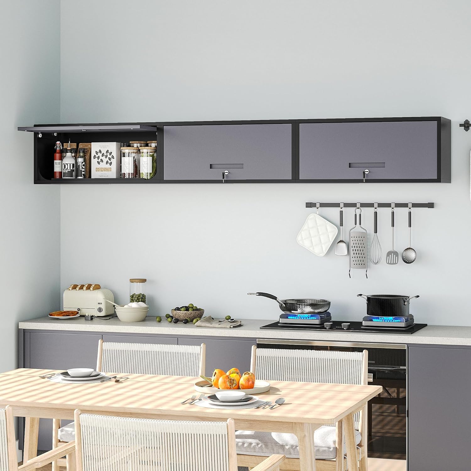 - 【Up-Flip Door Design】The wall cabinet adopts an up-flip door design, and the maximum opening and closing angle can reach 90°, which is convenient to open and close without occupying space.